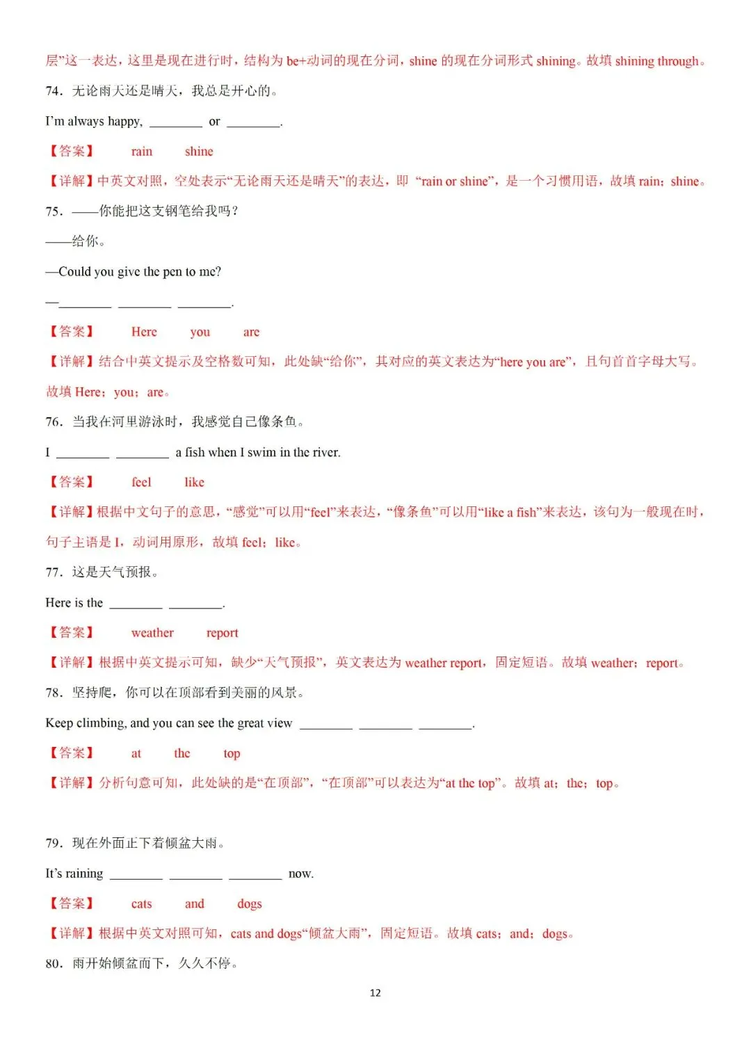 今天老师为大家整理好了:七年级下册英语核心短语复习解析版电子版可打印