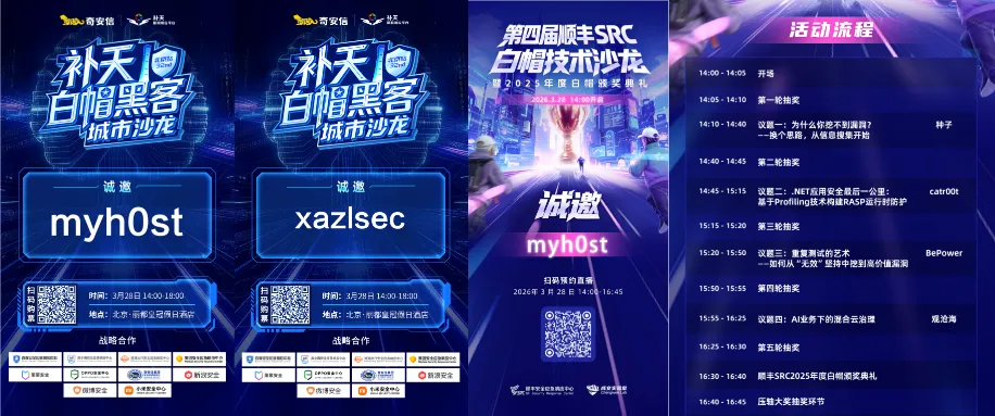 今日未发现新的 SRC 活动上线,不过明天有两场白帽子活动,欢迎大家踊跃参加: