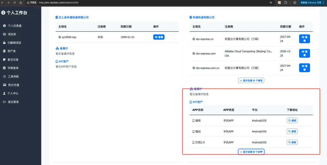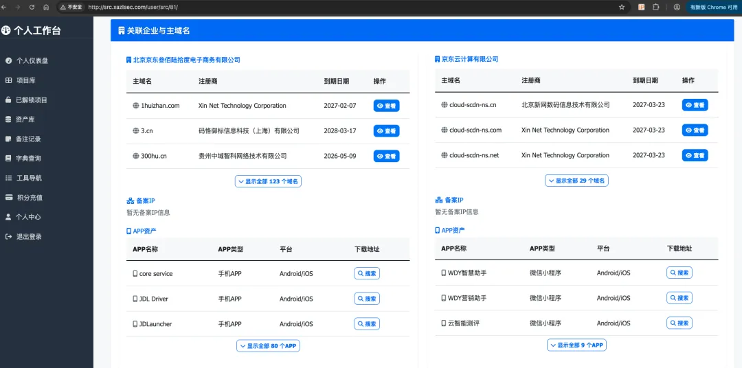 今天要分享的是 SRC 资产监控系统的一个功能更新,新增了企业备案 APP 和程序资产,如图: