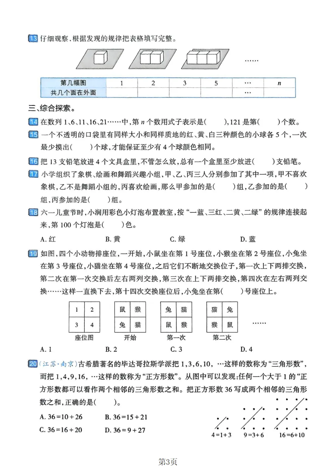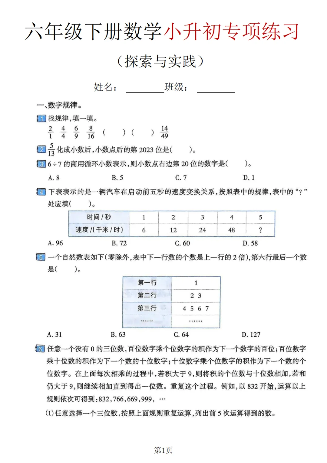 【高清电子版】六年级(下)数学 探索与实践专项练习卷