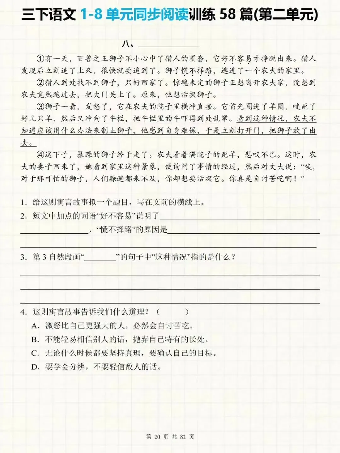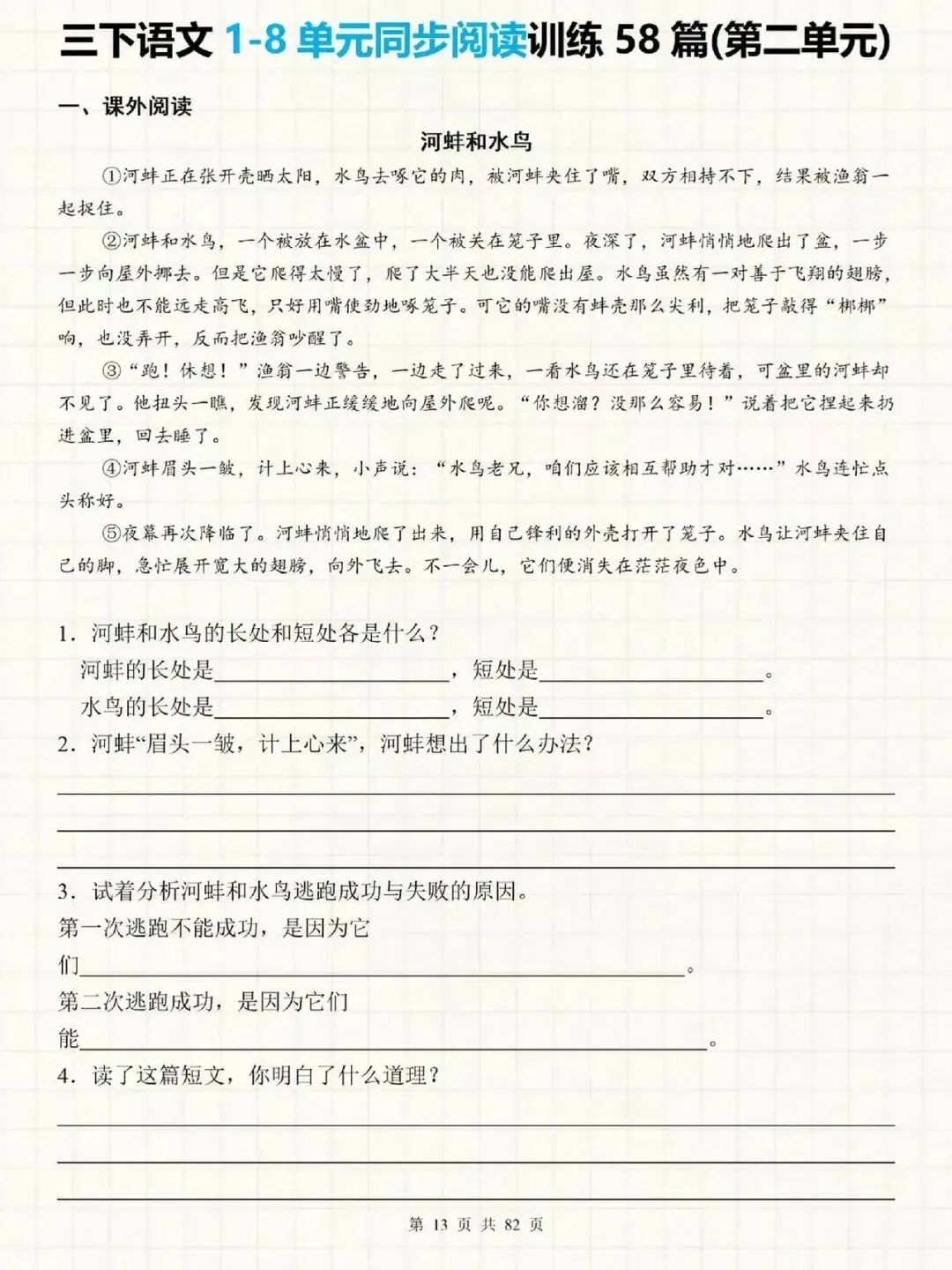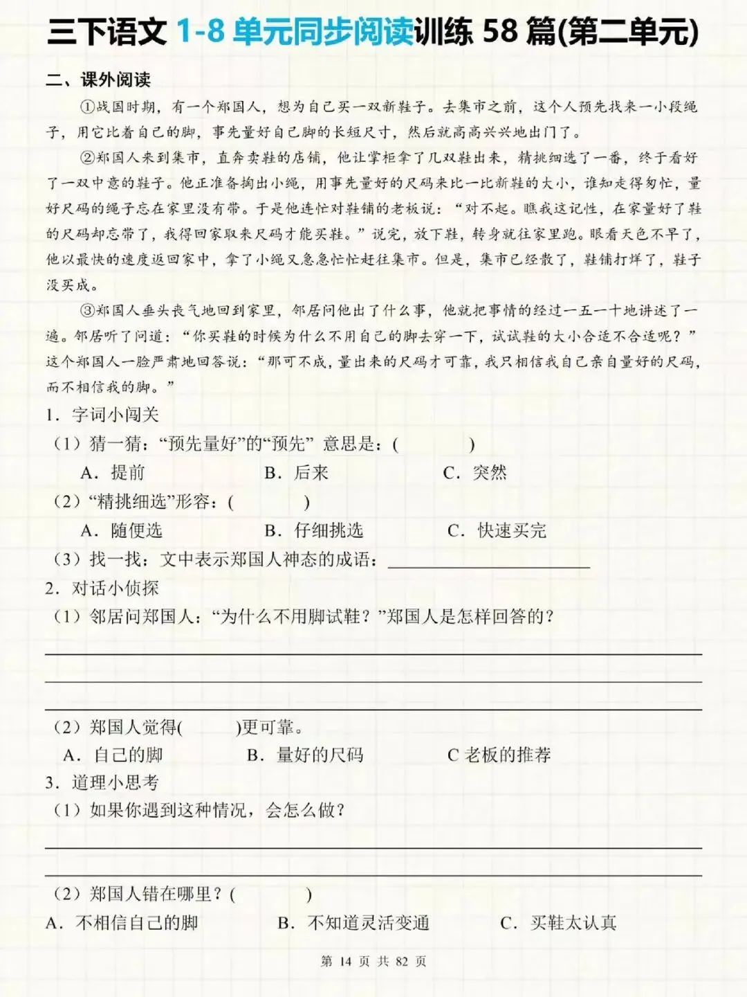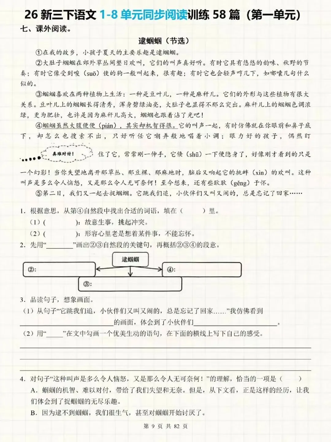 大家好我是提优补差;今天跟大家分享的是;26春人教部编版三年级下册语文1-8单元主题阅读《同步课内阅读理解+课外阅读理解每日一练|常考题型专项训练》(附答案)提供电子版,支持打印和下载。