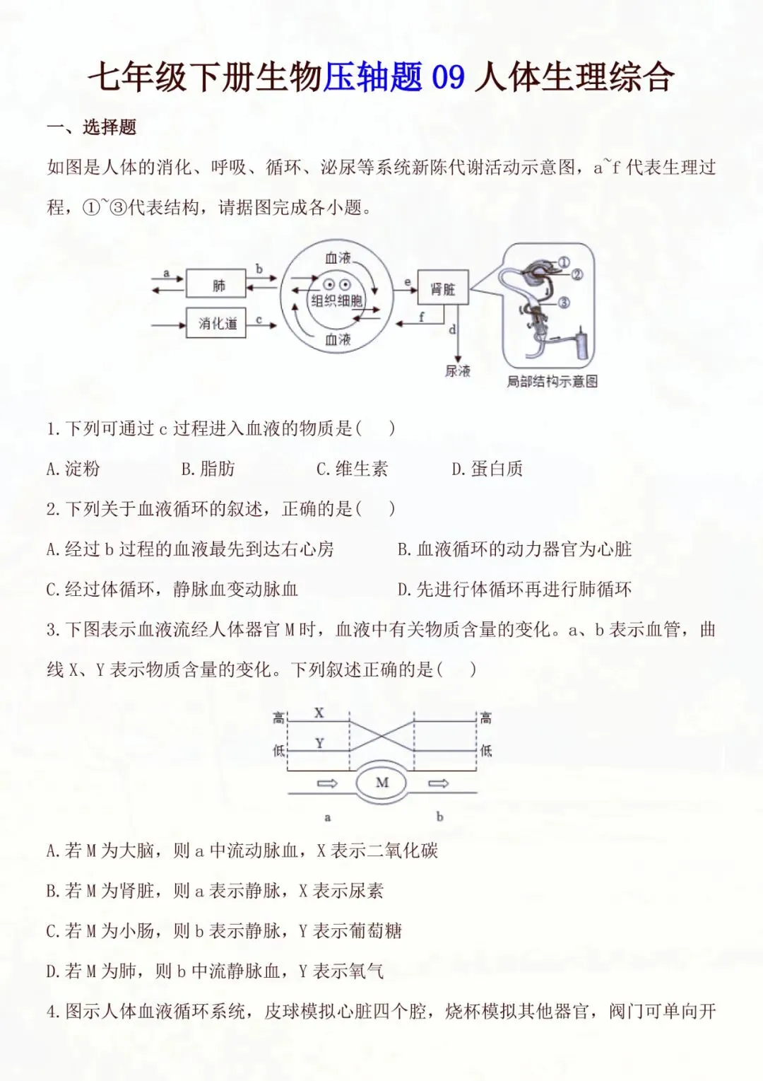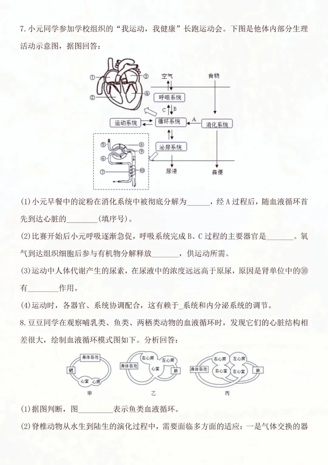 七年级下册生物|人体生理综合压轴题 电子版可打印