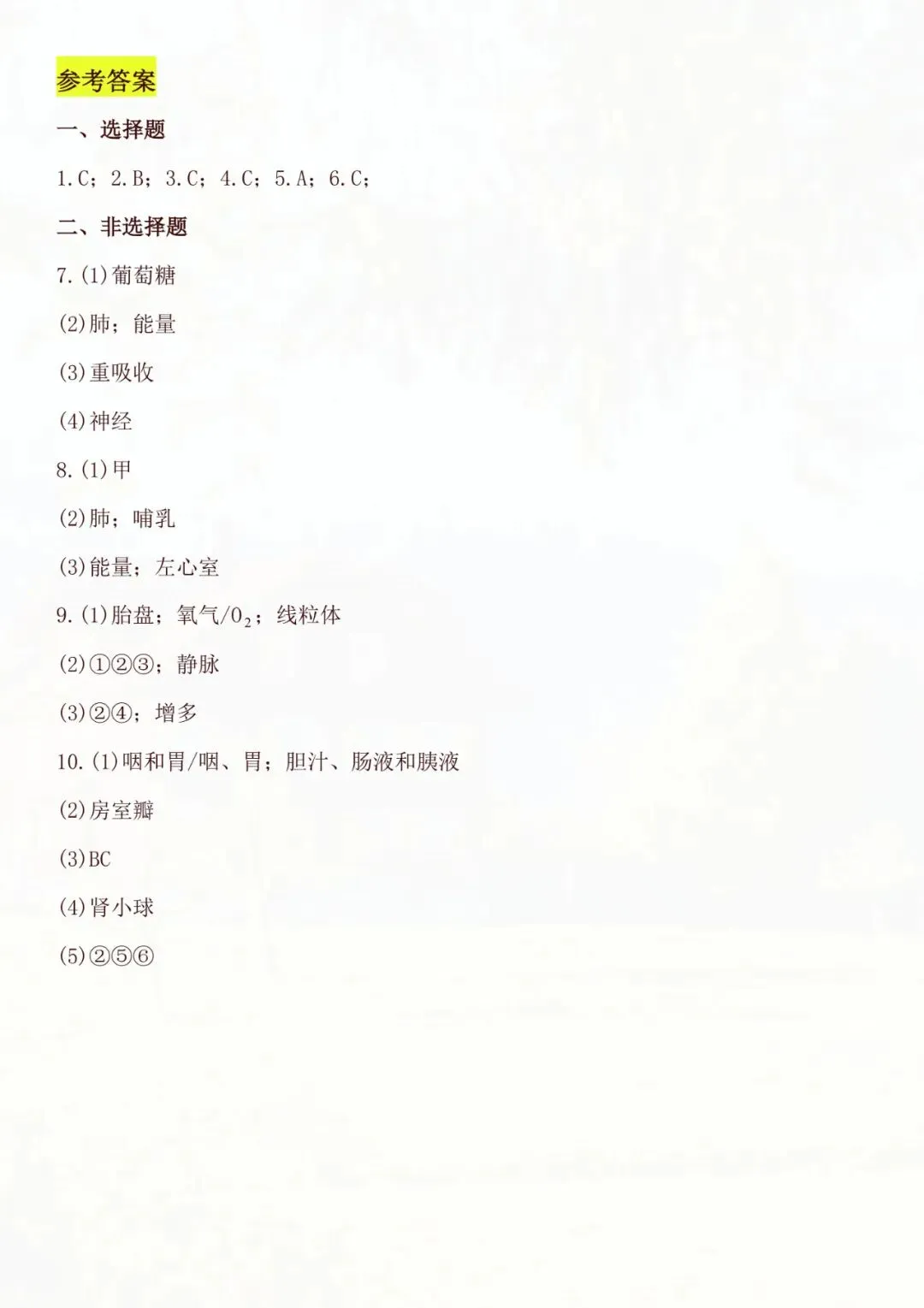 今天老师为大家整理好了:七年级下册生物|人体生理综合压轴题 电子版可打印!