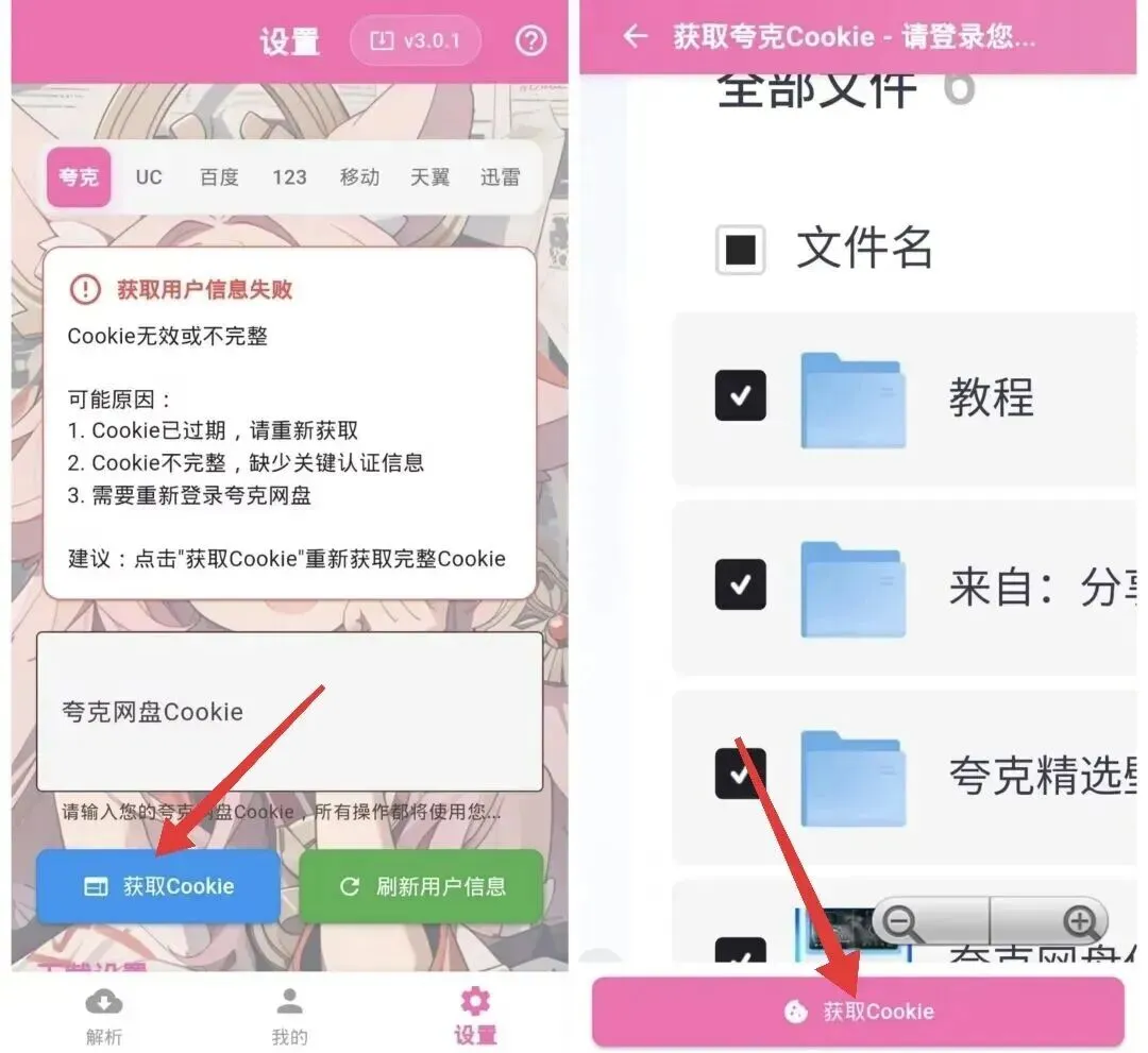 夸克不限速下载教程:进入软件后→点击”设置”→获取Cookie→用夸克扫码→获取Cookie就登录上夸克账号了
