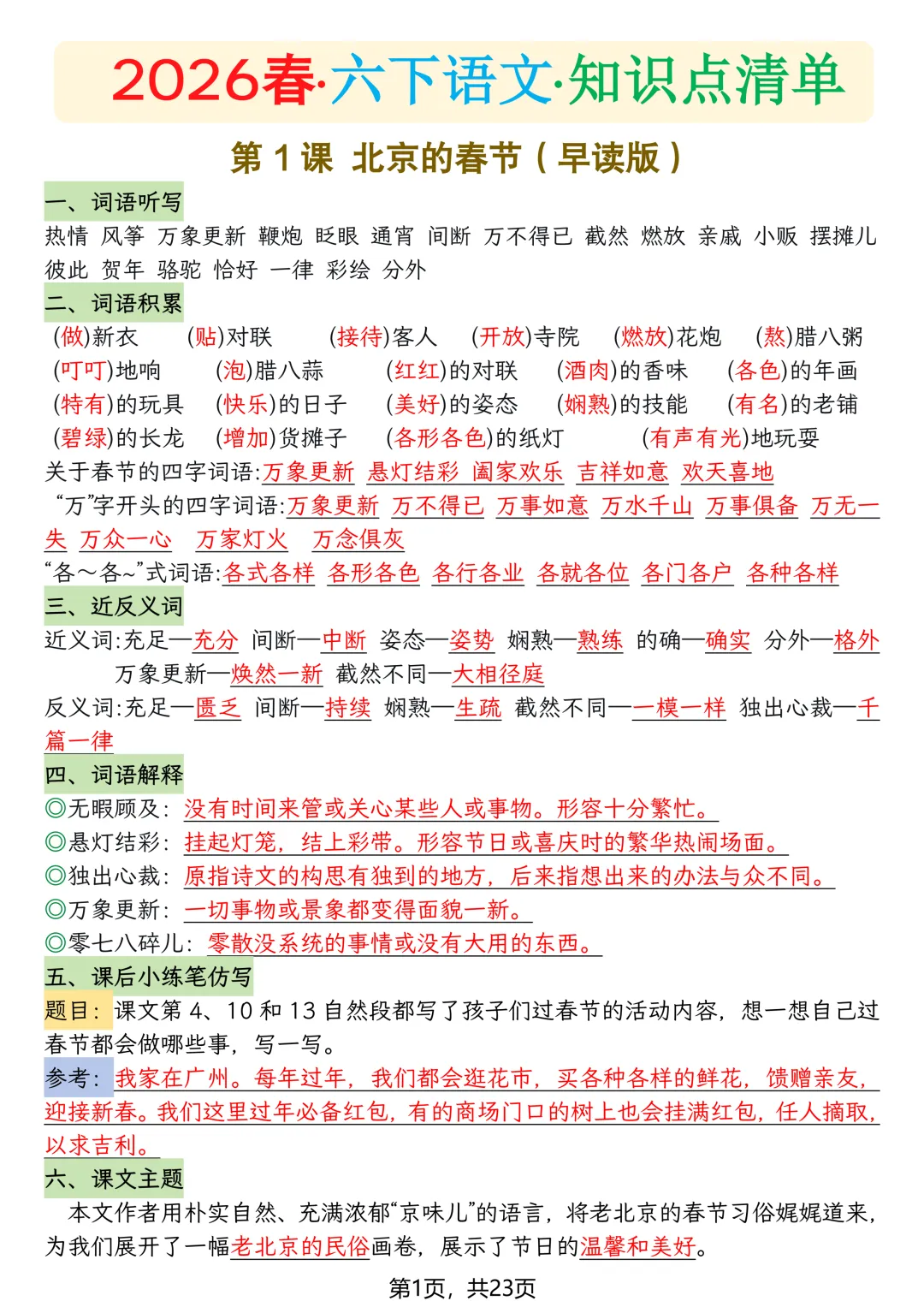 26春六年级语文下册《每课知识清单》,可下载 课文朗读 微课学习 课件教案 生字字帖 每课一练 必背内容 课文划重点 课堂笔记 晨读晚背 温馨提示:保存图片可打印或拉到文末可下载 声明:素材来源网络。需要更多预习资料请点击→语数英多版本1-6年级下册《预习资料包》,一键下载 下载方法▲扫码关注编部本小学语文 在公众号消息框(后台)回复:659资料下载视频讲解(点击观看) 点击下方『阅读原文』六年级下册语文资料合集