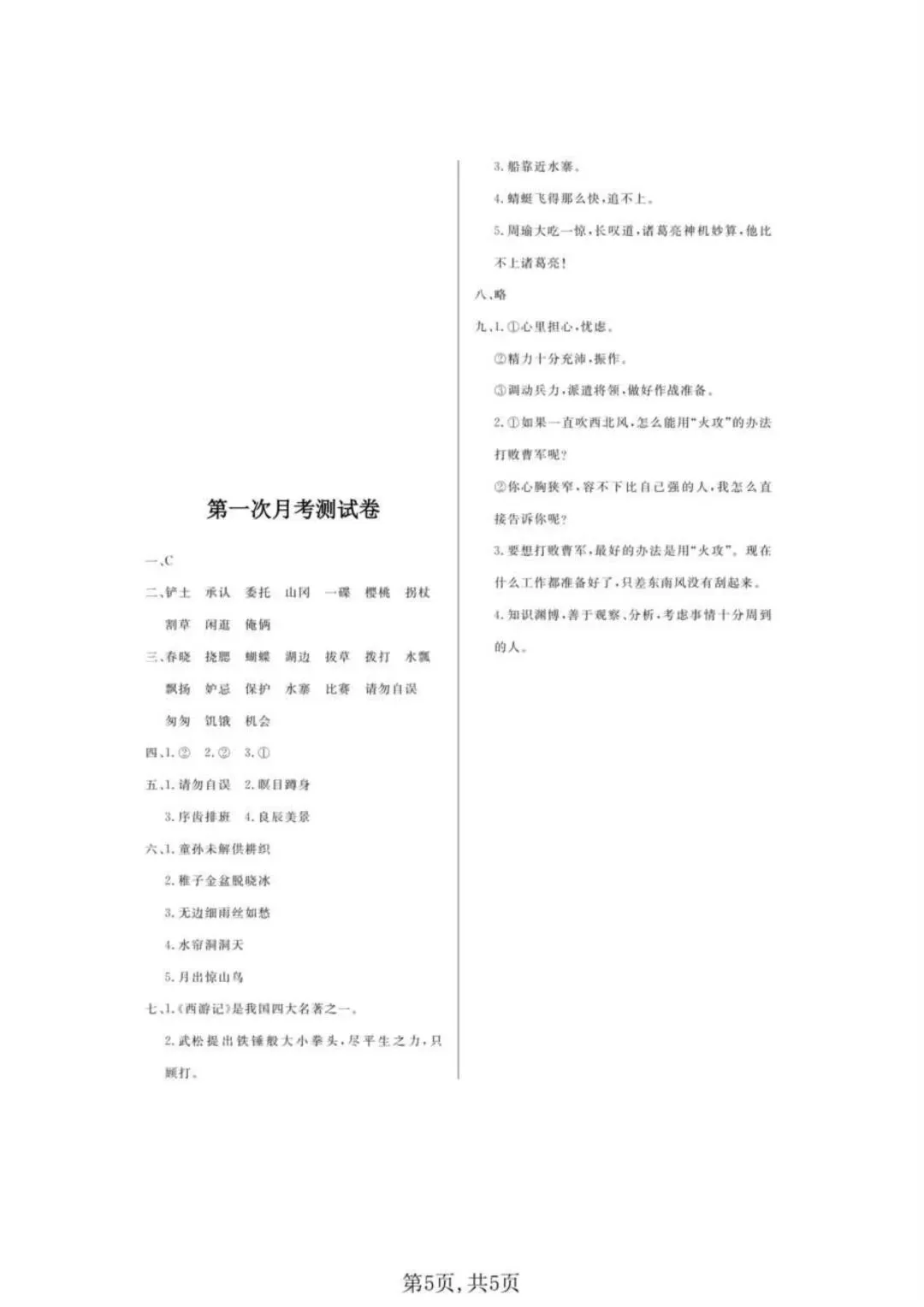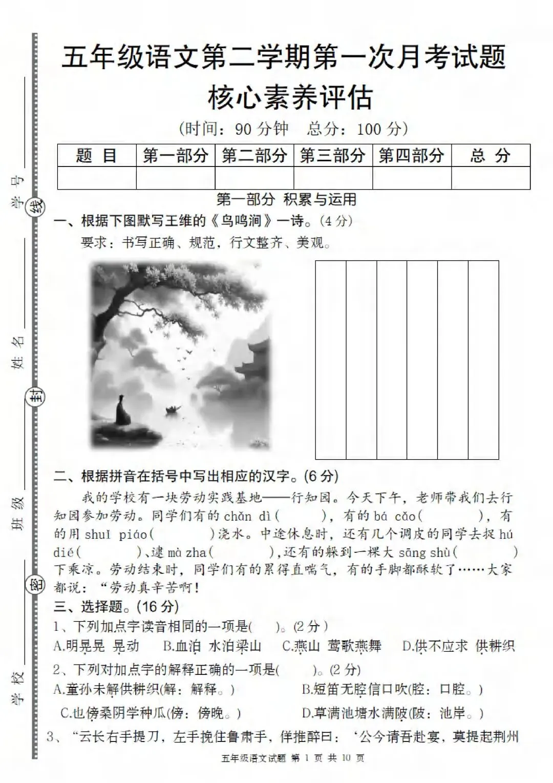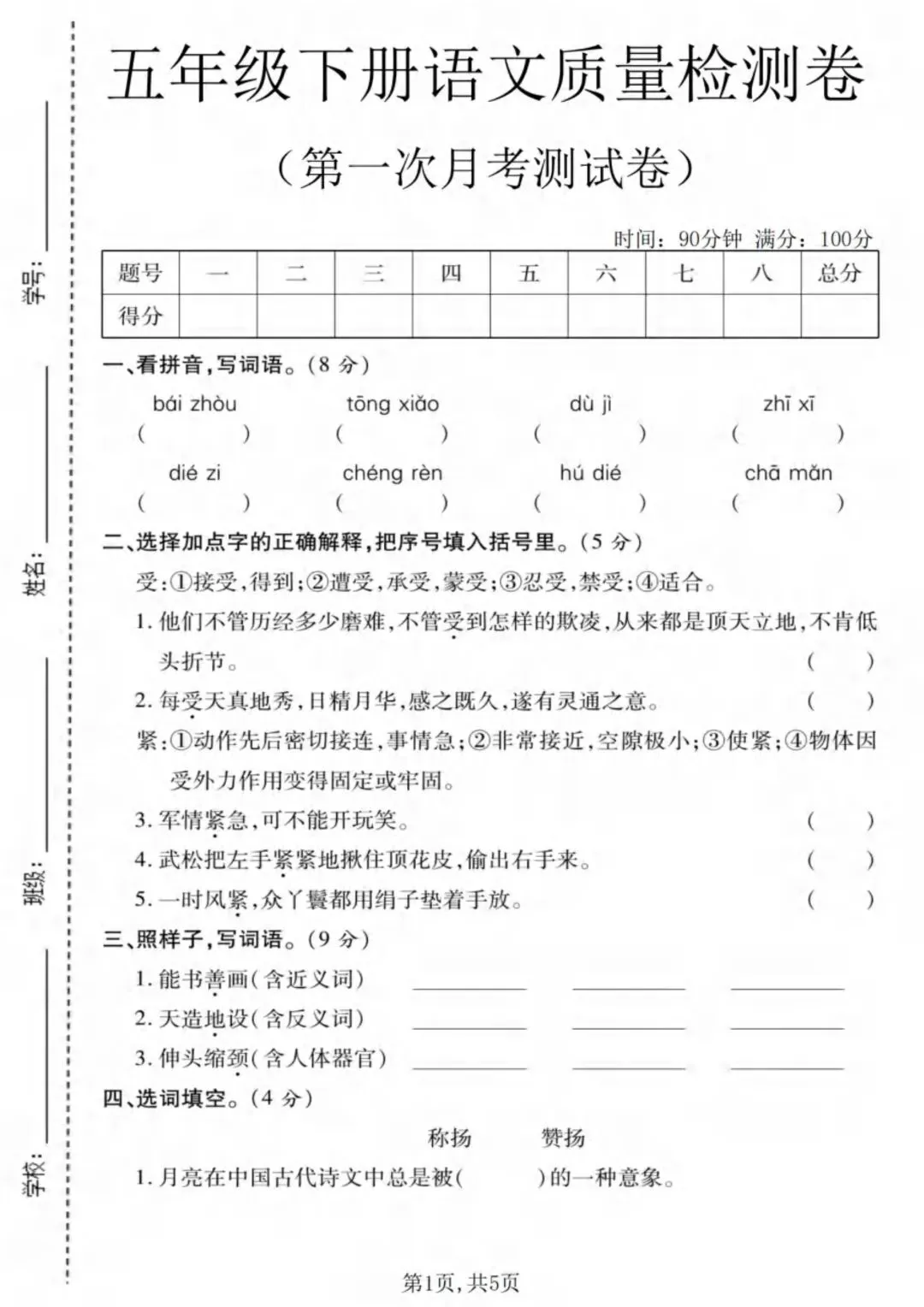 2026春新版五年级下册语文《第一次月考测试卷》(第一、二单元综合检测卷)共3套,电子版可打印。