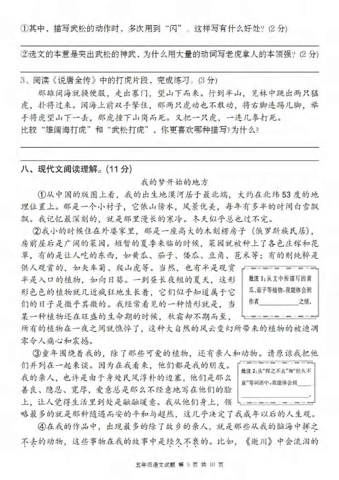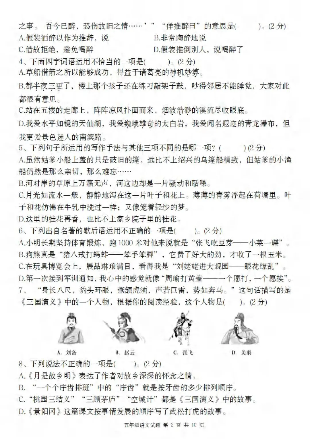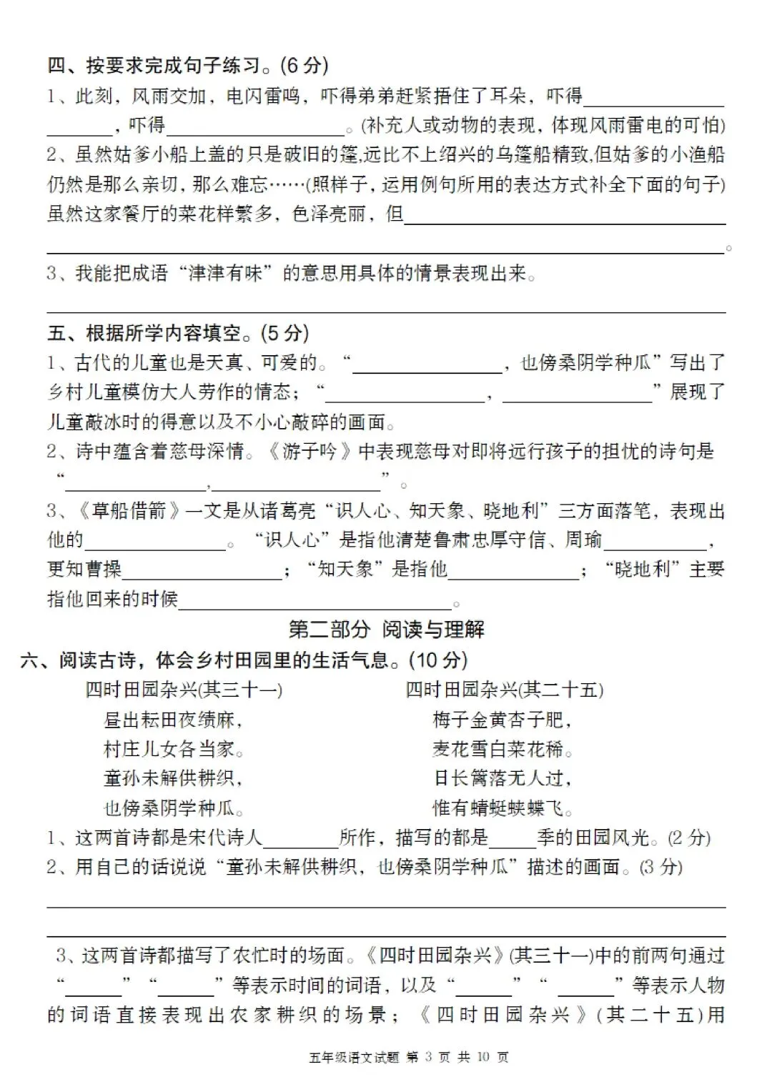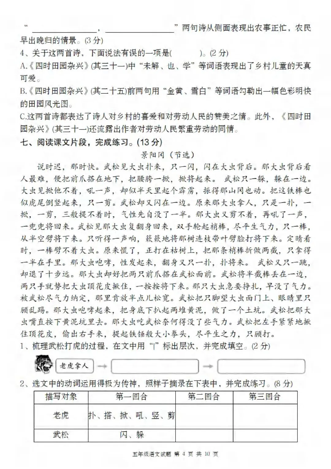 2026春人教部编版五年级下册语文《第一次月考测试卷》(第一、二单元综合检测卷)共3套,可打印