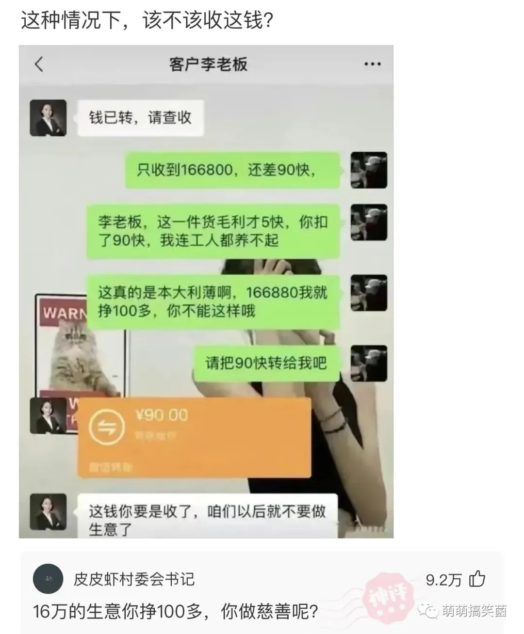 十六万的生意就挣一百多,要不你来大润发跟我一起杀鱼吧。