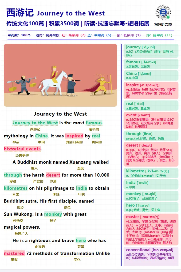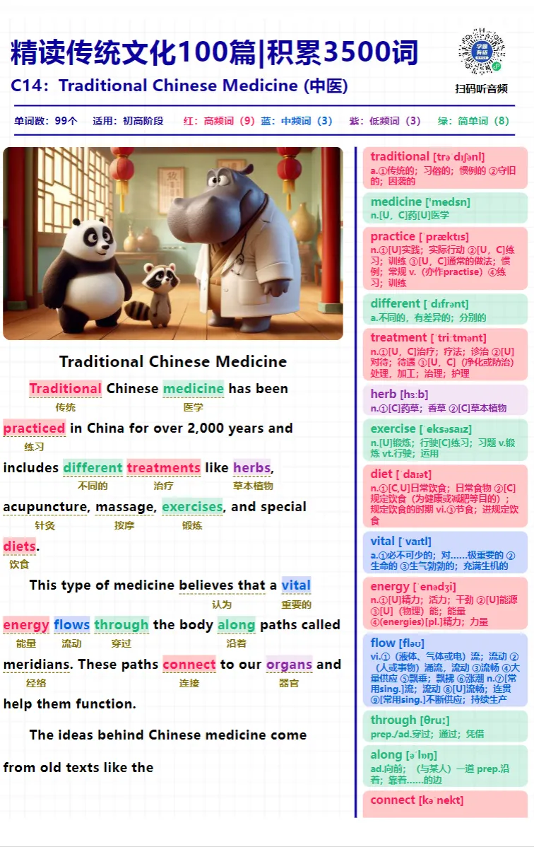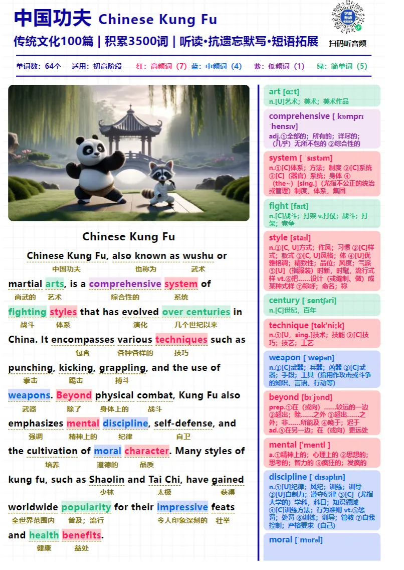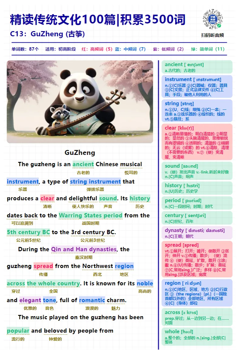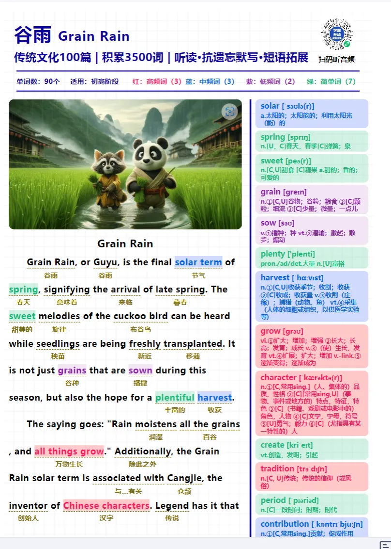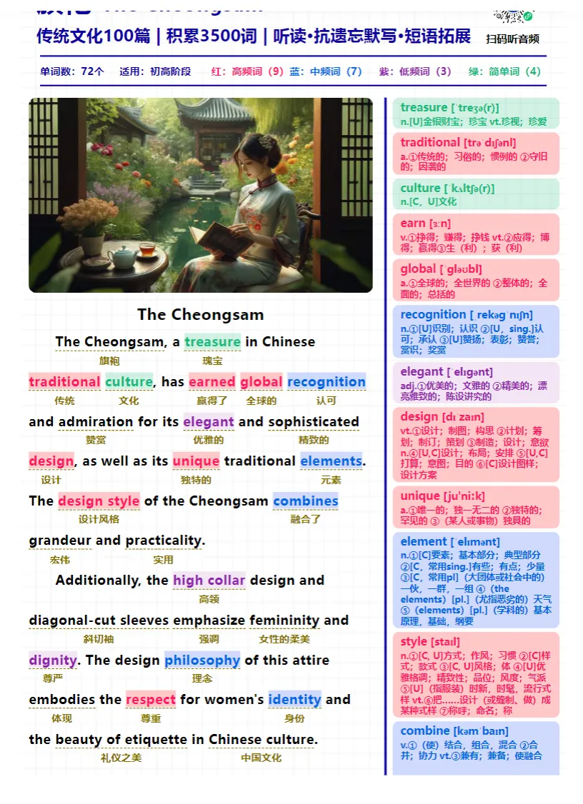 中国文化阅读精读100篇积累3500词pdf+音频+ 抗遗忘默写本