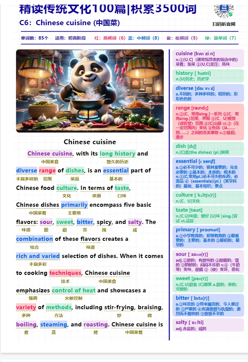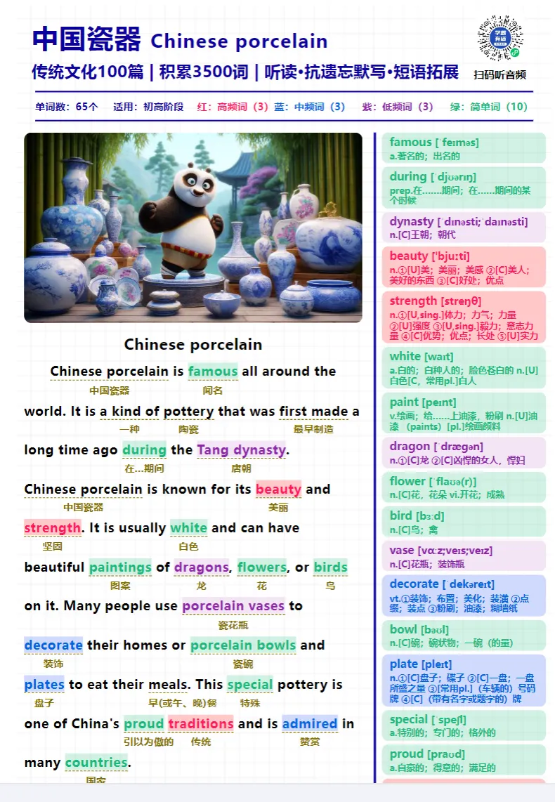 这是一套以中国文化为主题的英文阅读材料合集,精选约100篇短文,内容覆盖: