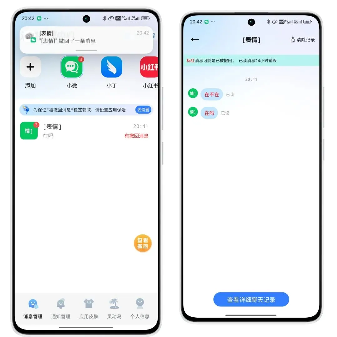 安卓已读不想回!支持所有平台消息防撤回 有问题或进粉丝群添加作者拉你,交个朋友也是可以的 今日分享 今天工具箱更新多款实用APP,自行在工具箱查看,比如,软件都是非常的棒的基本都是纯净无广无任何限制,时间有限,只介绍一款 已读不想回 ⚙️ 支持系统:安卓 ⚙️ 软件版本:1.2.8 ⚙️ 应用大小:119.MB 📚 应用简介:已读不想回免费软件能够便捷的管理手机上的各种消息,支持设置消息防撤回,不用担心来不急看,兼容了各种主流聊天软件的消息,后台稳定运行,不影响其他应用的使用,可以在不显示已读的情况下阅读消息 . 今日软件获取方式 再本公众号后台回复关键词 已读不想回获取