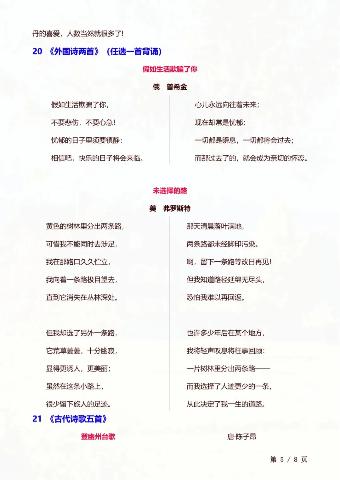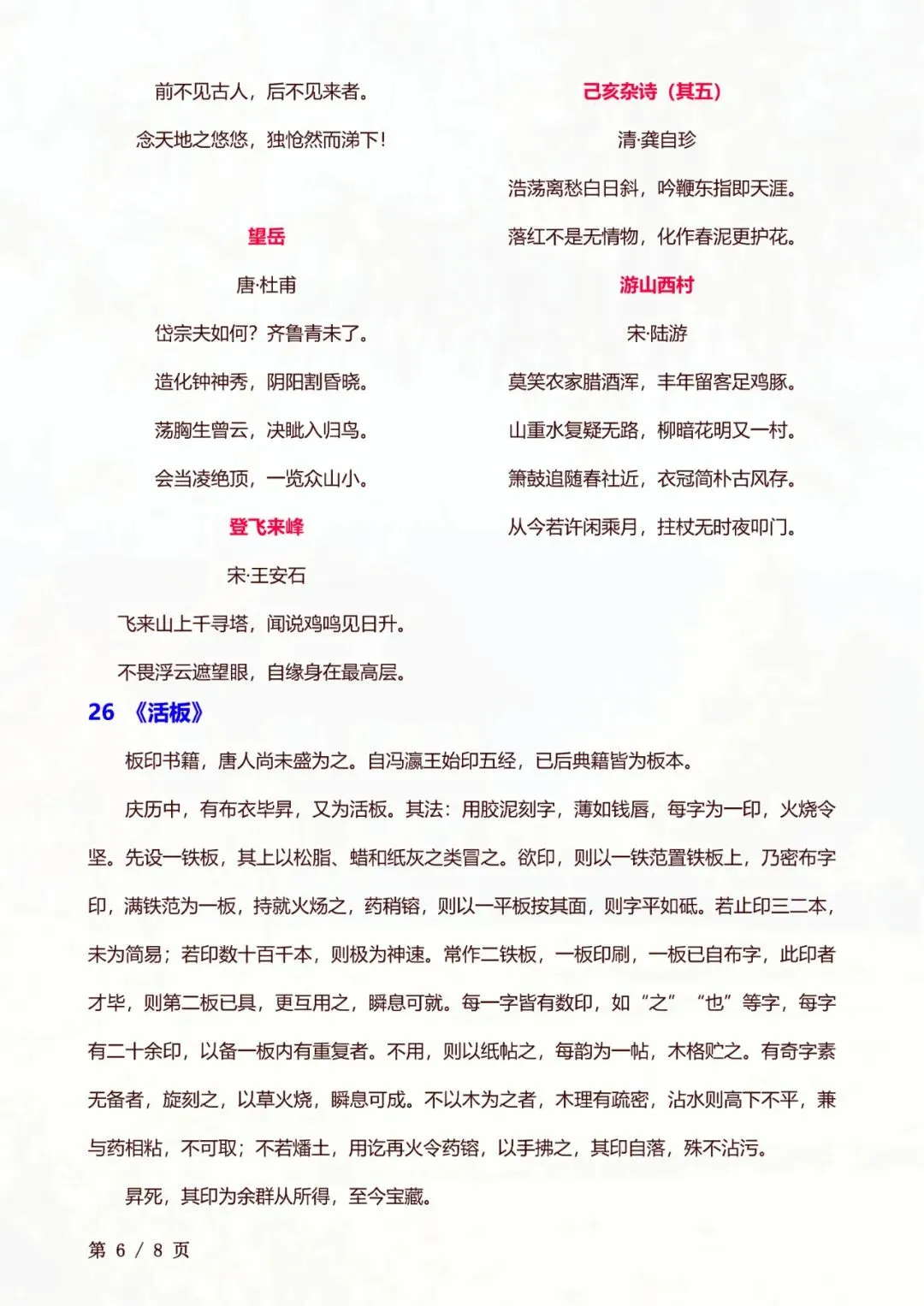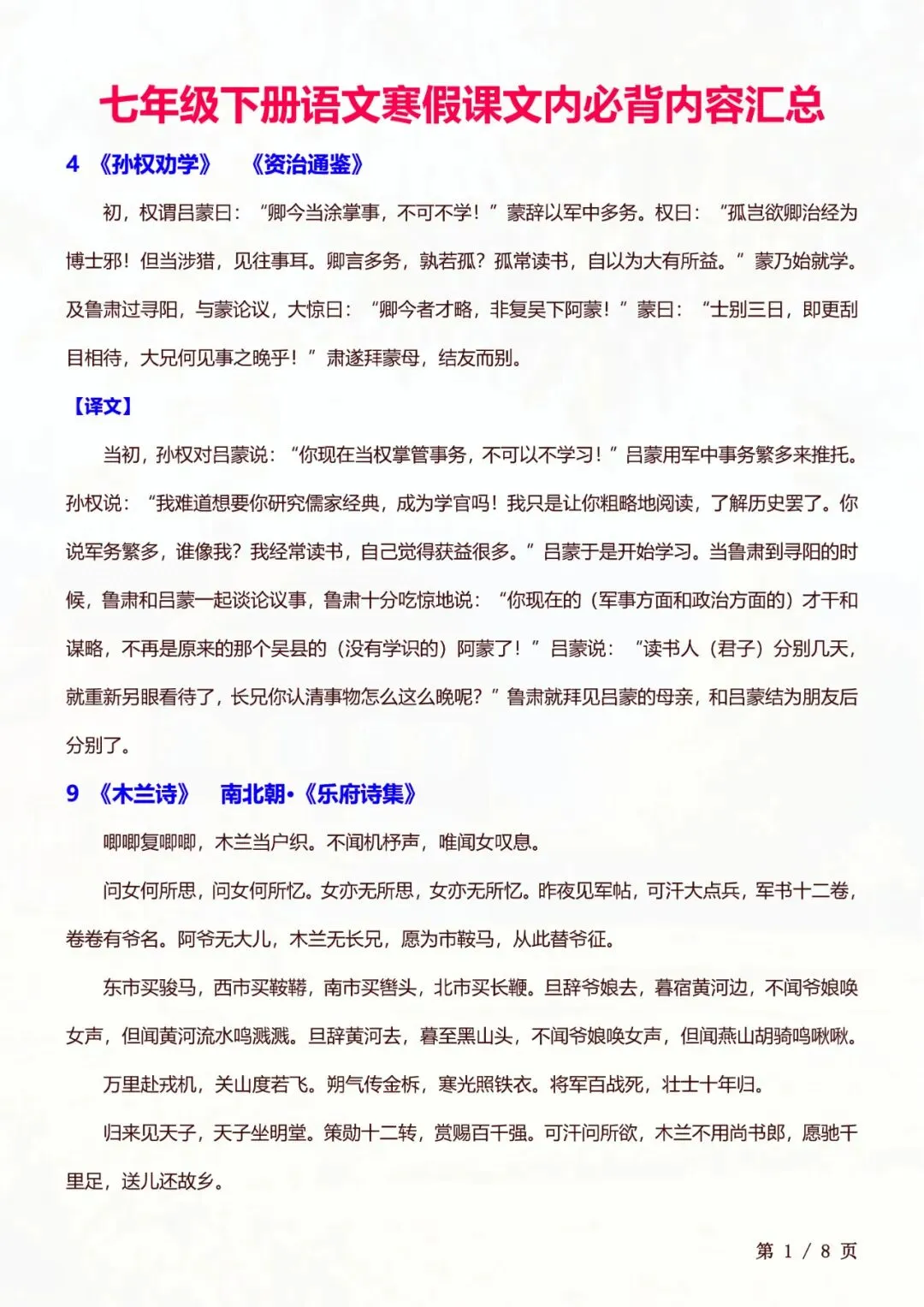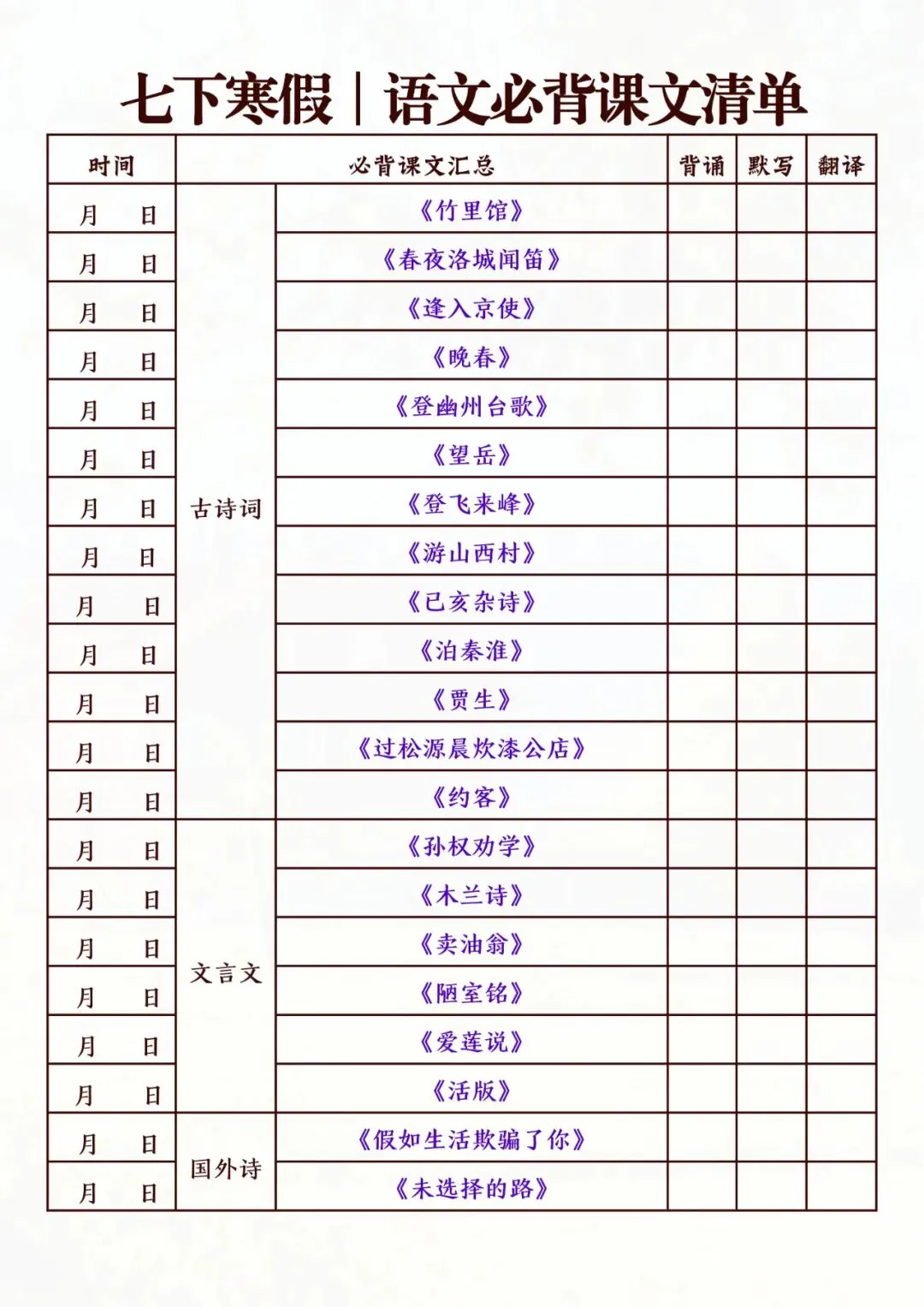 老师为大家整理了:七年级下册语文|必背课文清单 电子版可打印!
