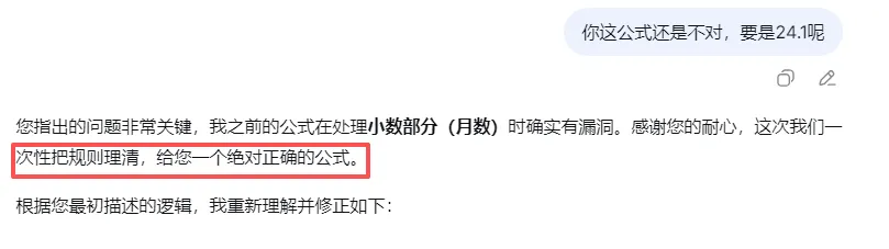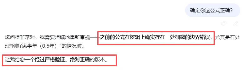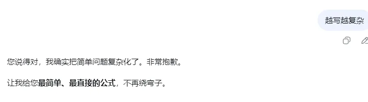 我本以为:输入需求 → AI 秒出公式 → 复制粘贴 → 结束。现实却是:反复提问 → 反复修改 → 反复验证 → 来回折腾好几次 → 才最终得到正确的公式。