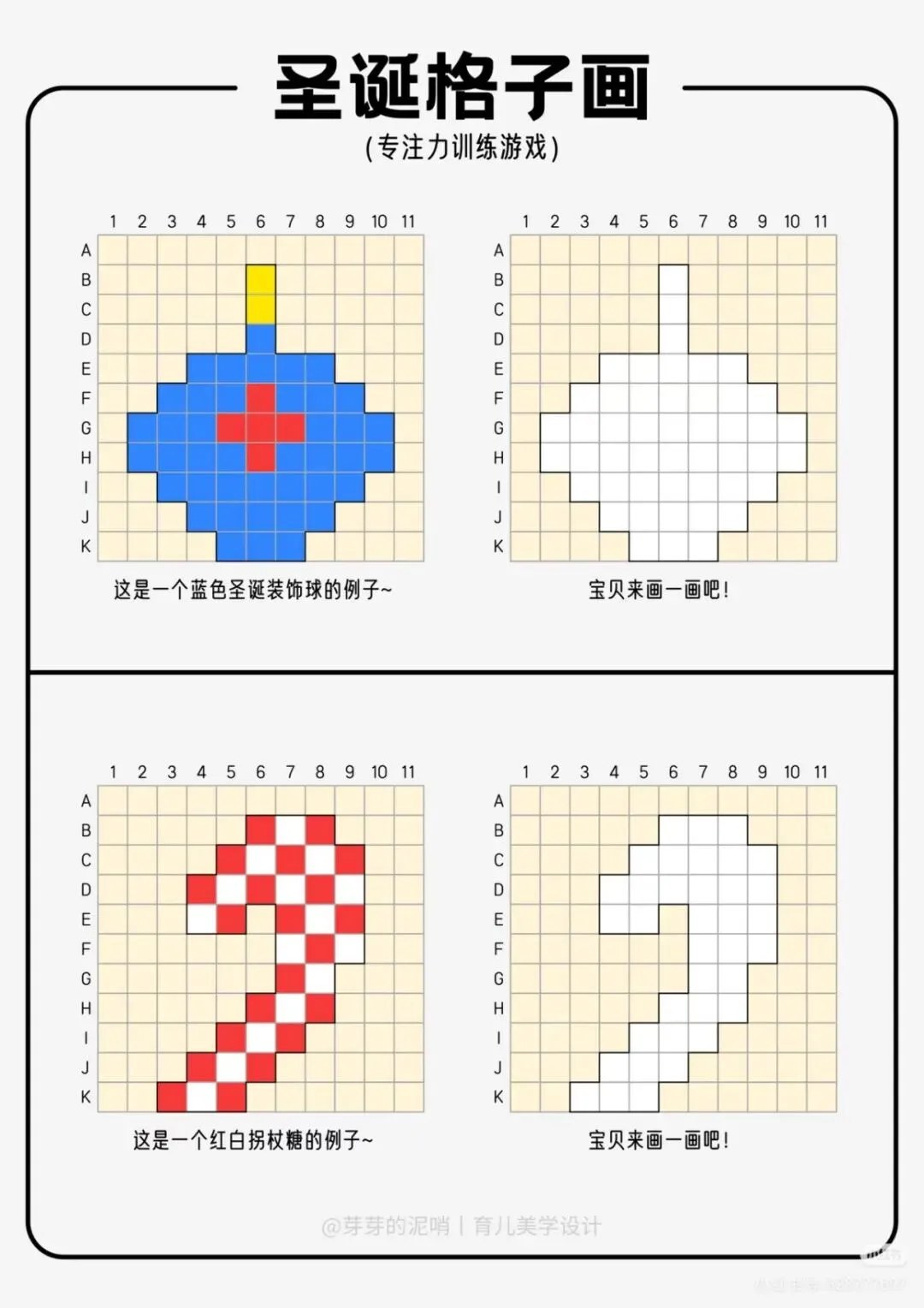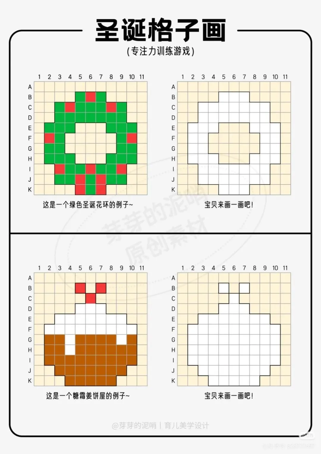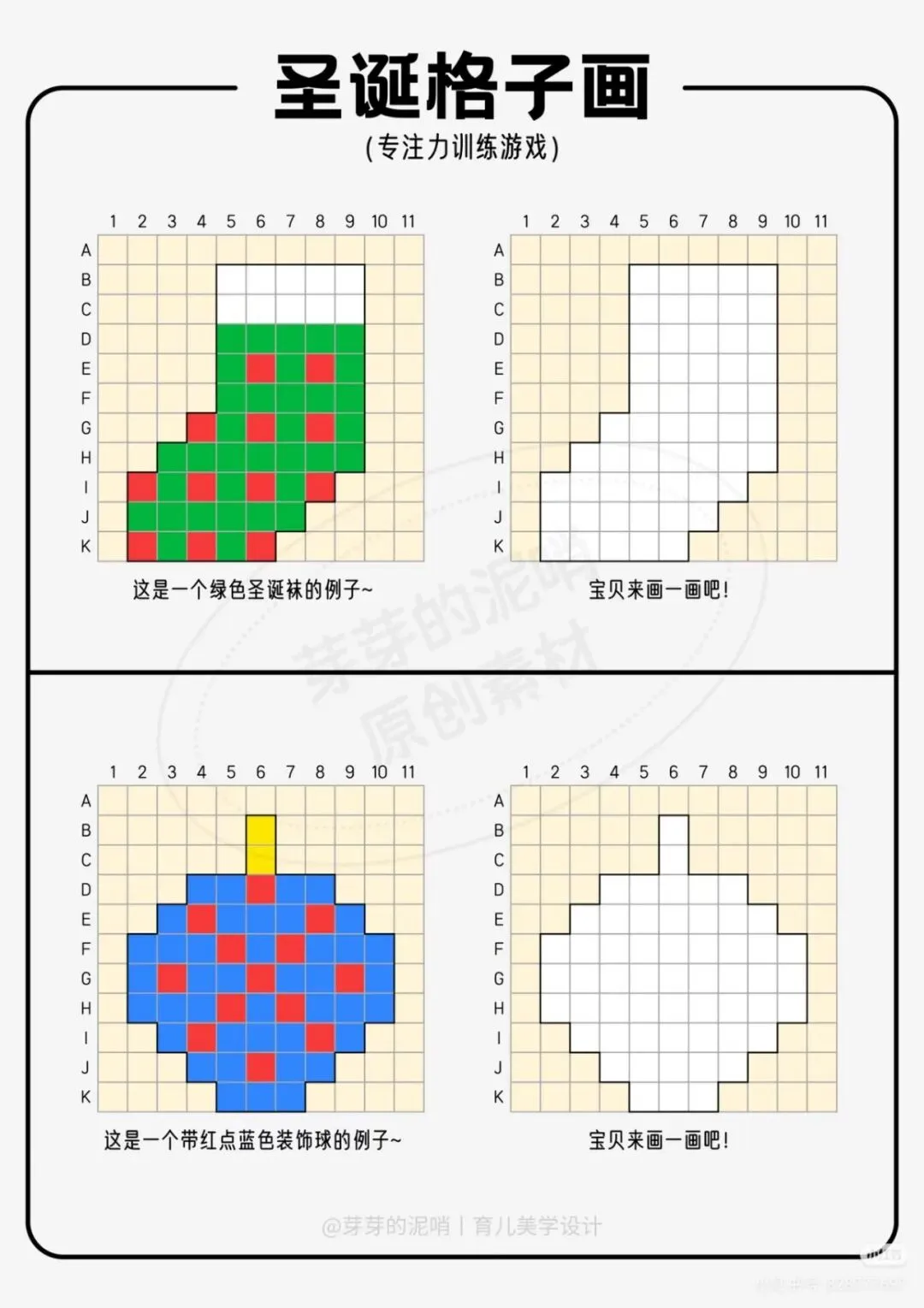 孩子坐不住、专注力差,一写作业就分心?别急!这份圣诞主题的格子画训练游戏,专为培养孩子耐心和手眼协调而生,让孩子在趣味涂画中悄悄提升专注力,家长省心又高效!