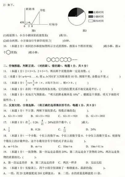 六年级(下)数学 小升初毕业模拟考,PDF电子版,可打印,免费下载