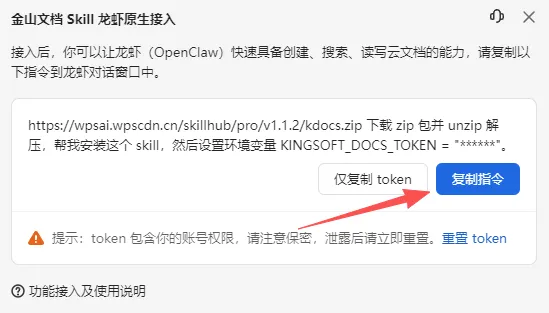 我在龙虾上面装了金山文档的 Skill,让它拥有了直接操作金山文档的能力。
