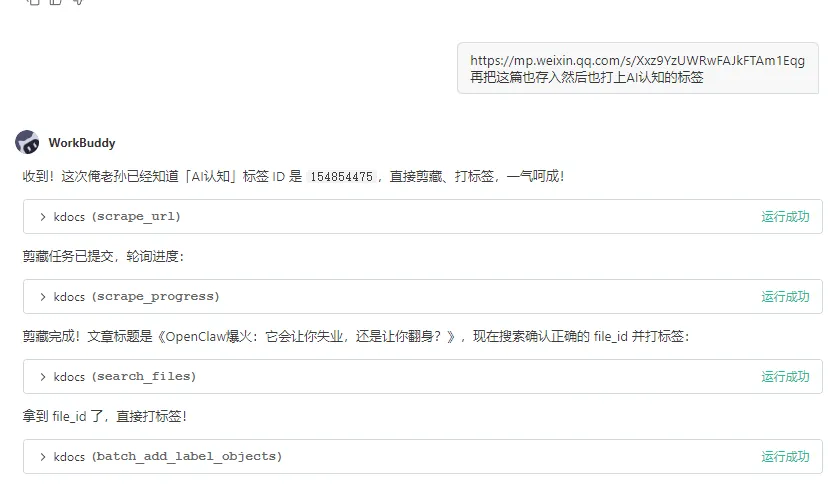 “帮我把这篇文章存到金山文档,打上标签:AI认知”