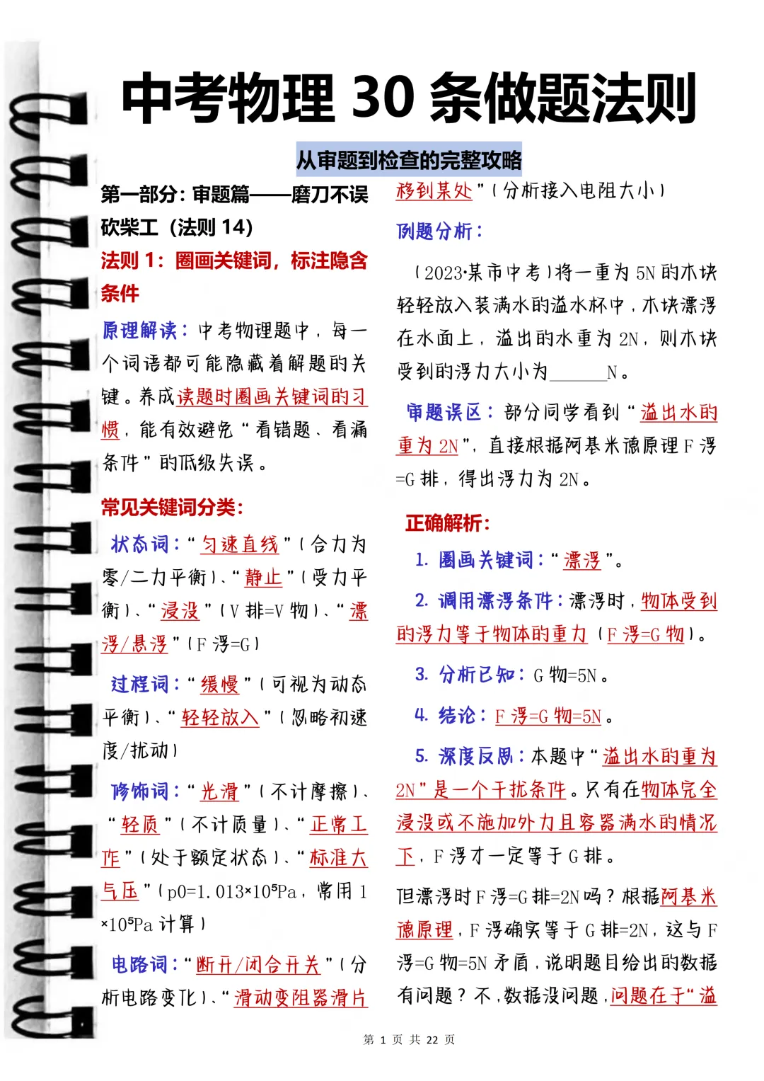 今天给大家整理了中考必备的【中考物理30条做题法则】,覆盖电能、做功、牛顿定理等全场景常考话题,附详细分析与例题解析,不管题目如何变式,都能精准应对,轻松拿下高分!