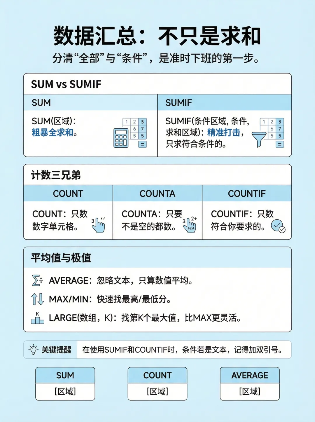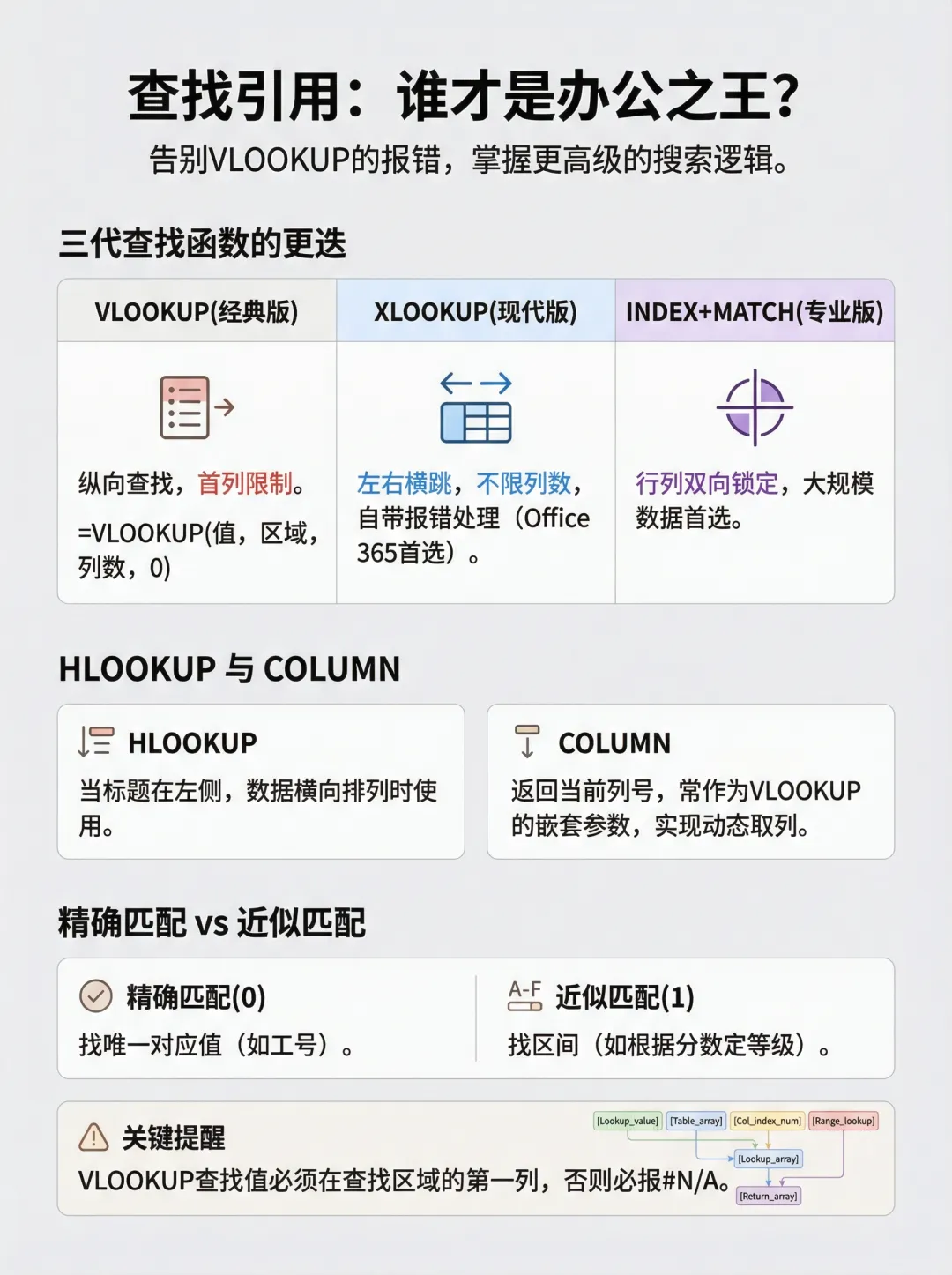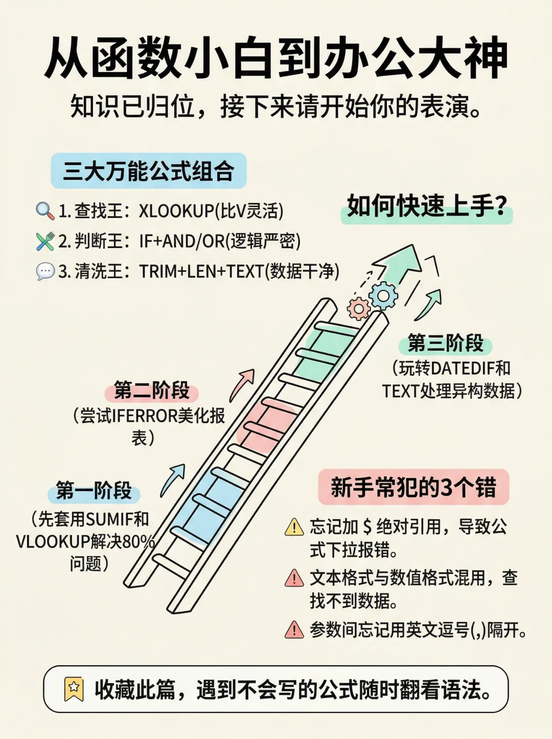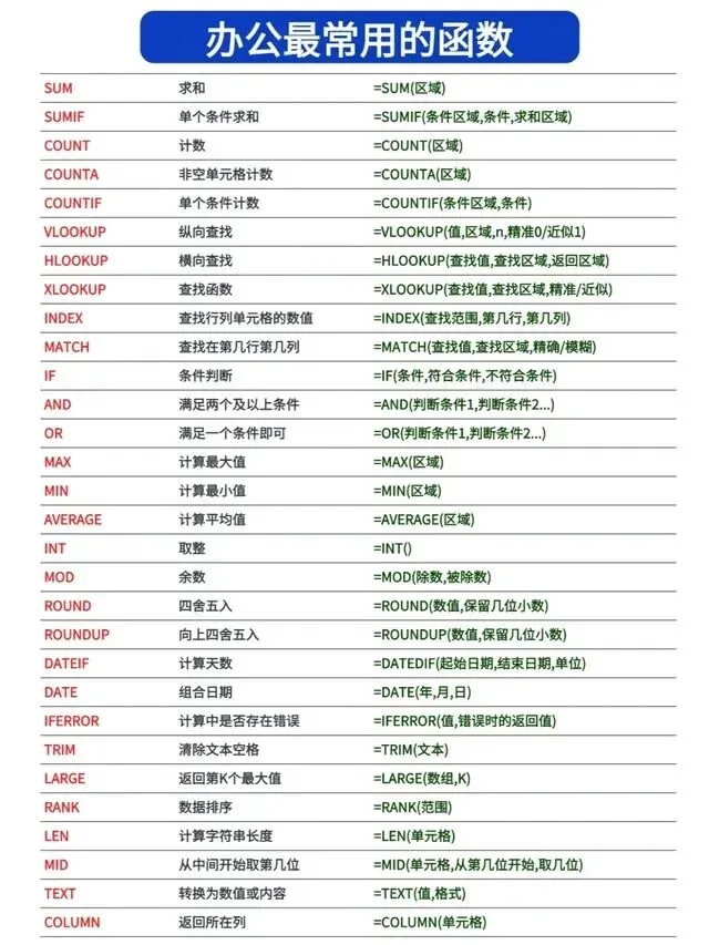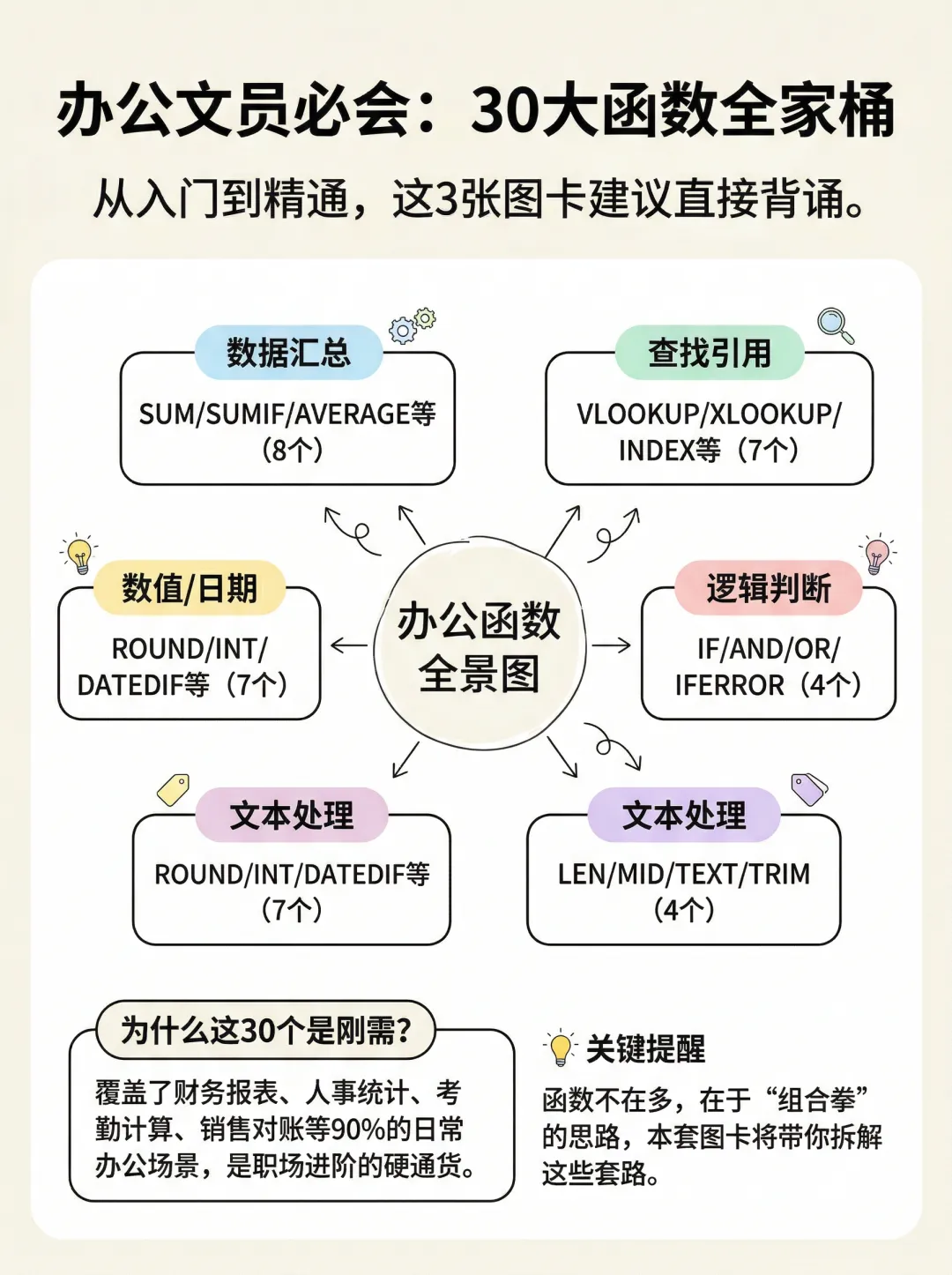 终于有人把办公文员必会的 Excel函数 整理清楚了!下次遇到直接看这三张速记表!告别加班!