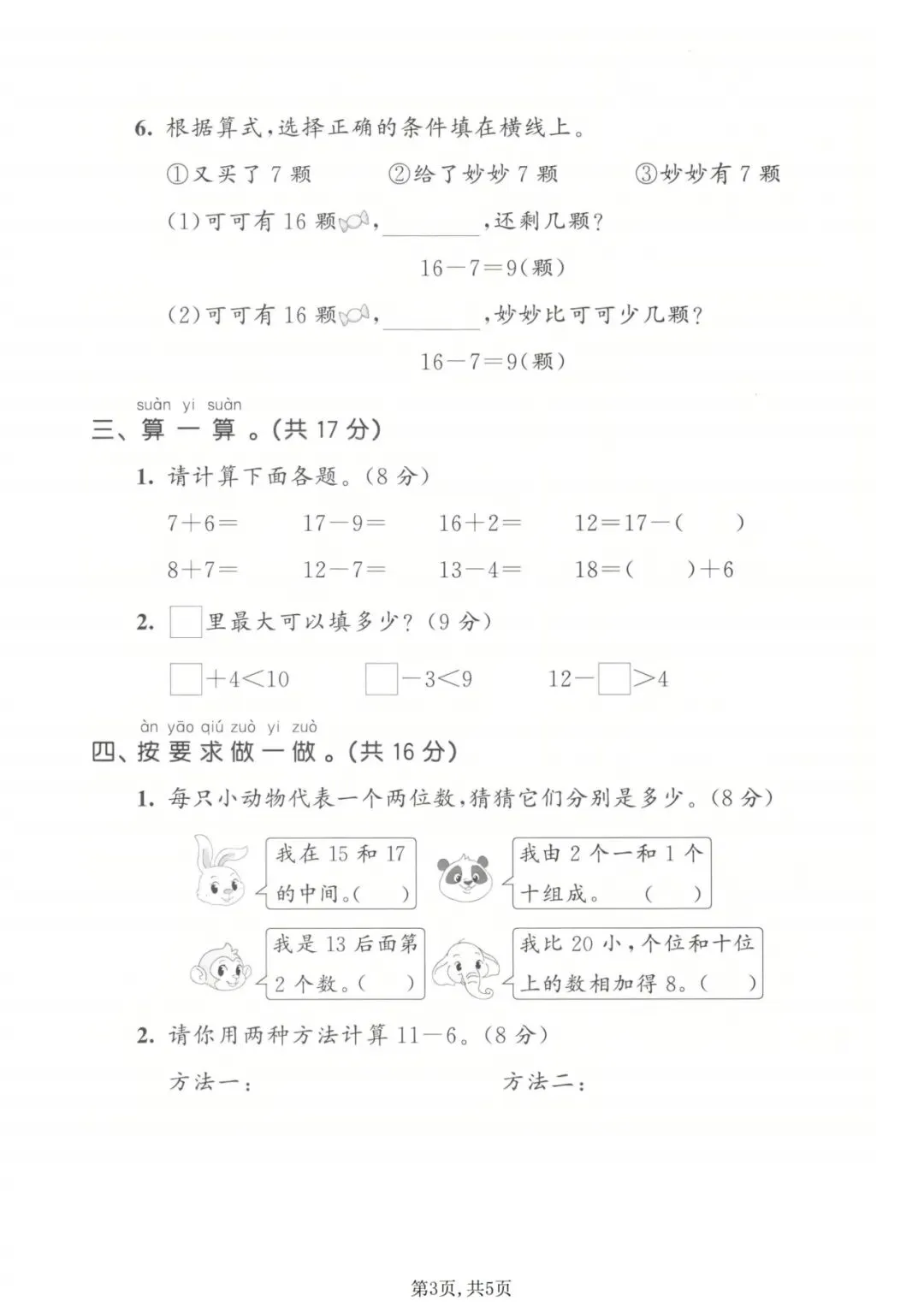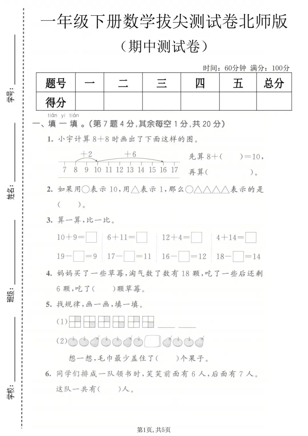 一年级下册数学期中拔尖测试卷丨可打印