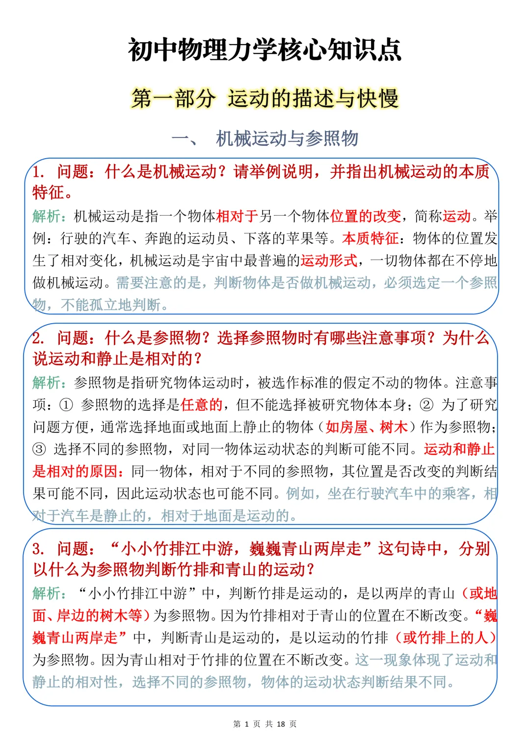 今天给大家整理了中考必备的【初中物理力学核心知识点】,覆盖机械运动、速度快慢的计算、质量与密度等全场景常考话题,附详细说明与例题解析,不管题目如何变式,都能精准应对,轻松拿下高分!