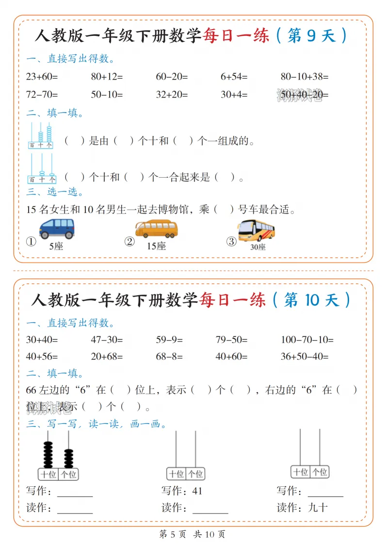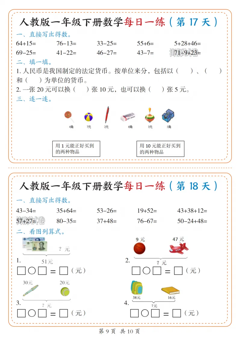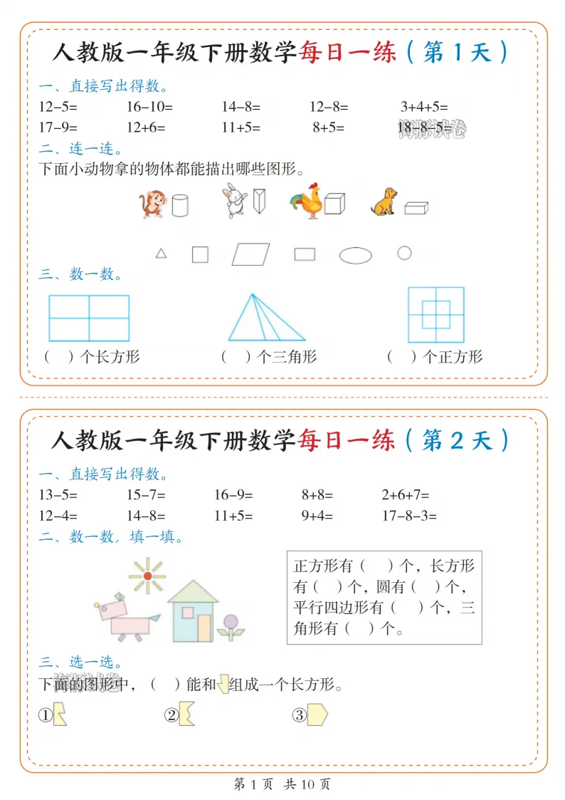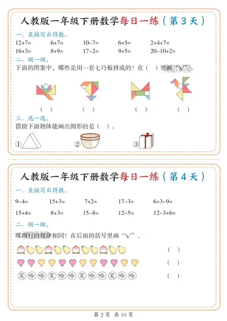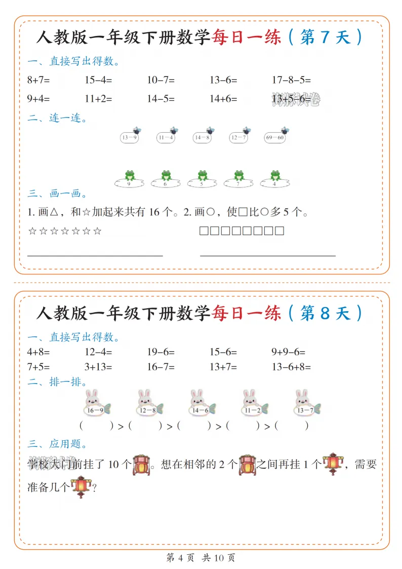 🌸今天给家长分享的是:26一年级下册数学《每日一练》|电子版可打印