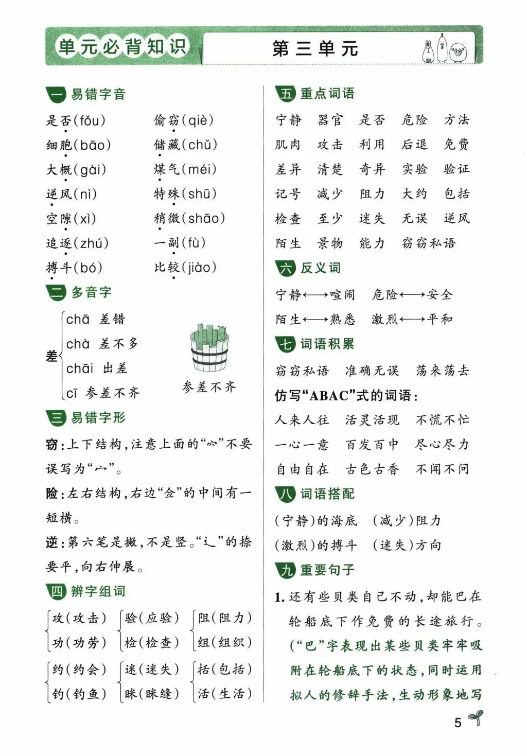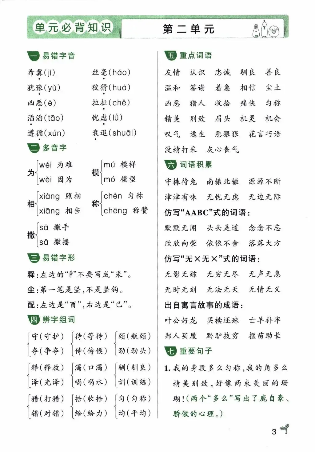 三年级下册语文单元必备知识汇总,电子版可打印