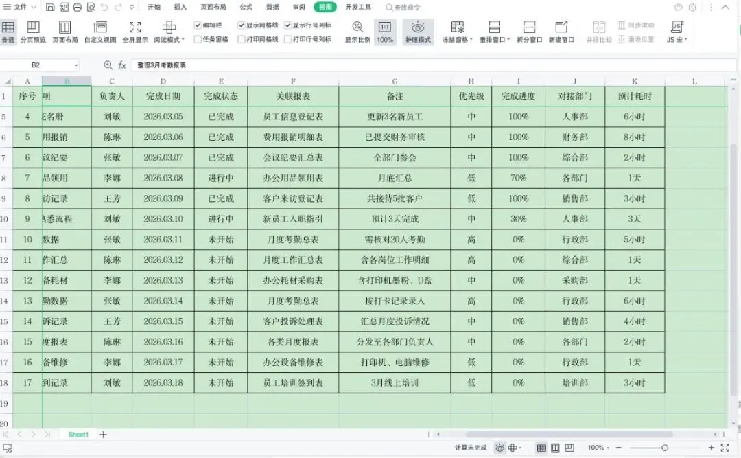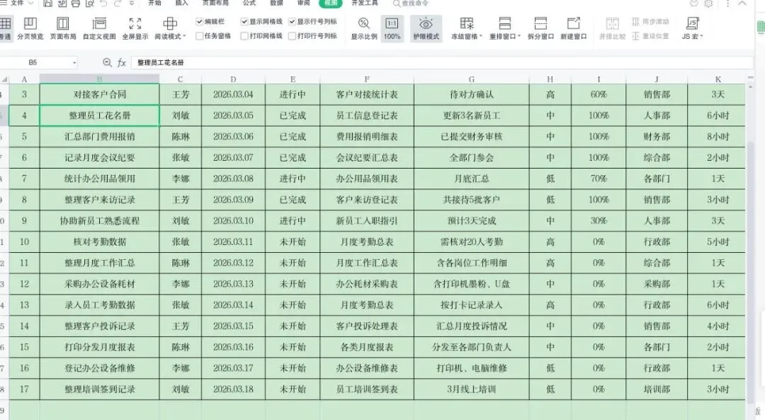下表格为文员高频长表格(17行11列),行数和列数大幅增加,滚动时极易出现表头消失、找数据混乱的问题,用文中的冻结首行首列技巧,可快速固定表头,找数据更高效。