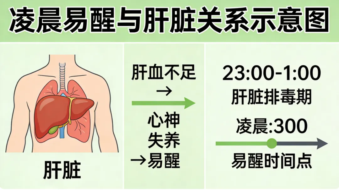 中医认为,凌晨1-3点是肝经当令的时间。如果肝脏功能受损,这个时间段就容易出现失眠、易醒的情况。