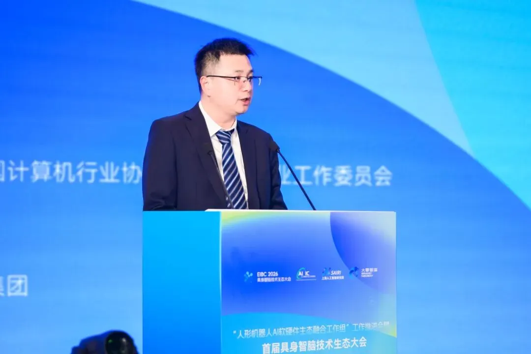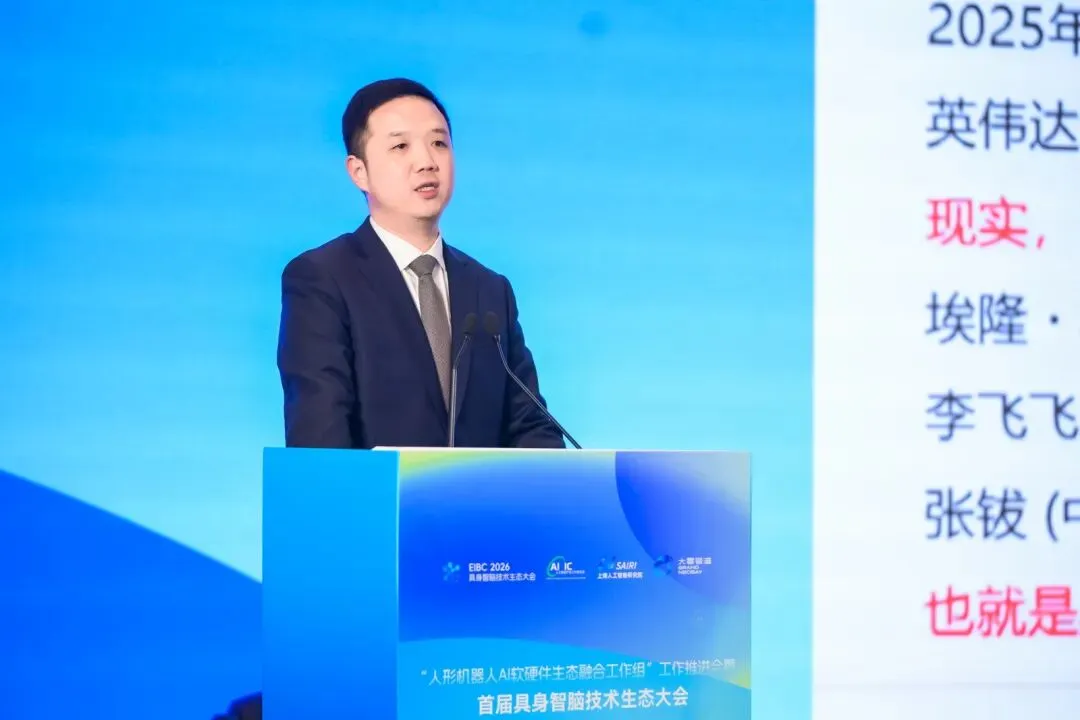 会上,上海人工智能研究院院长宋海涛代表人形机器人AI软硬件生态融合工作组(以下简称“工作组”)组长单位作工作汇报,系统介绍了“技术协同、标准共建、生态共融”的阶段性成果与推进路径。作为工作组单位代表,上海人工智能研究院智脑中心主任、上海灵境智源科技有限公司创始人兼CEO孙博发布了《具身智脑:物理AI时代的灵境方案》,展示了面向具身智能的智脑系统创新方向与技术架构。