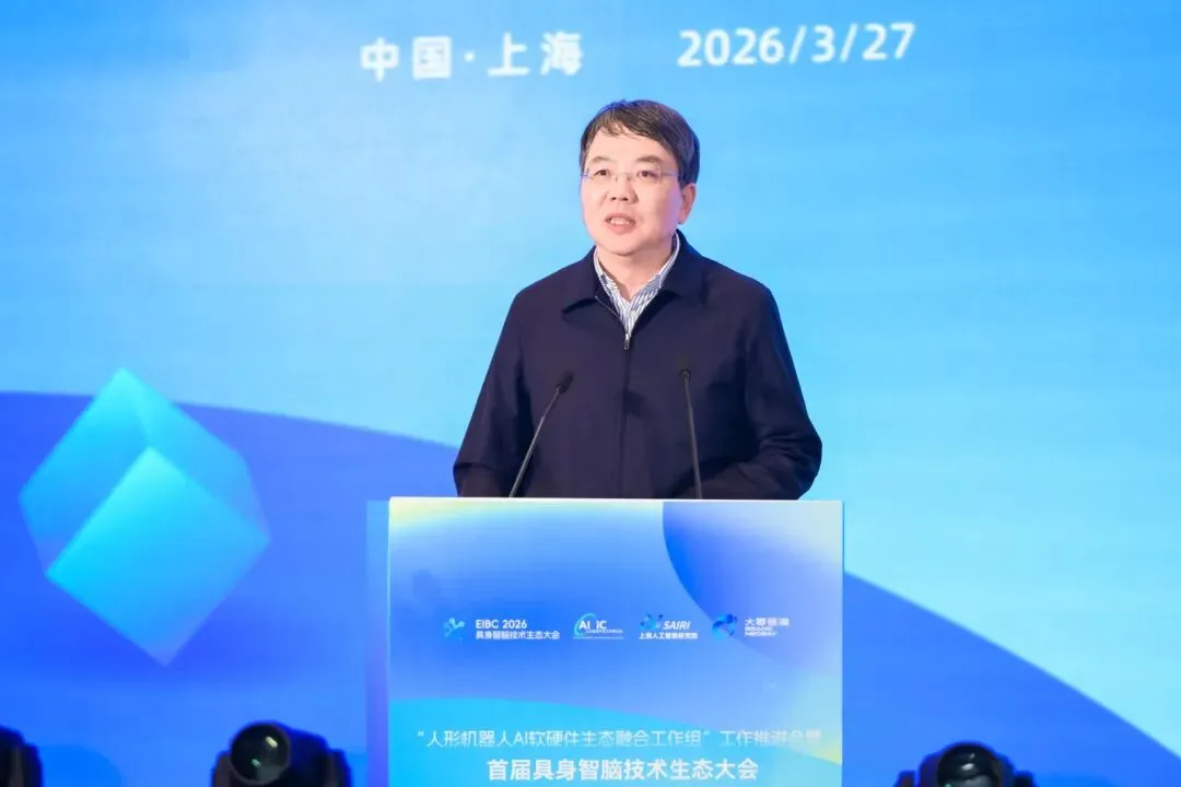 2026年3月27日,为深入贯彻国家关于开展“人工智能+”行动部署,抢抓具身智能产业发展先机,“人形机器人AI软硬件生态融合工作组”工作推进会暨首届具身智脑技术生态大会在上海闵行大零号湾隆重召开。本次大会由上海交通大学、上海市闵行区人民政府、人工智能产业工作委员会指导,上海人工智能研究院主办,上海灵境智源科技有限公司承办,旨在通过政产学研用深度协同,构建全产业链创新生态,探索“十五五”时期智能经济发展的实践路径,为国家构建现代化产业体系、培育新质生产力先行先试。中国科学院院士、上海交通大学校长丁奎岭、中国科学院院士毛军发、中国科学院院士丁汉、工信部电子信息司二级巡视员吴国纲、上海市经信工作党委二级巡视员徐方、上海市闵行区委副书记、区长吴强、上海市闵行区人民政府副区长谭瑞琮、人工智能产业工作委员会秘书长高宏玲、上海科创投党委书记、董事长朱民、上海人工智能研究院院长宋海涛出席会议。