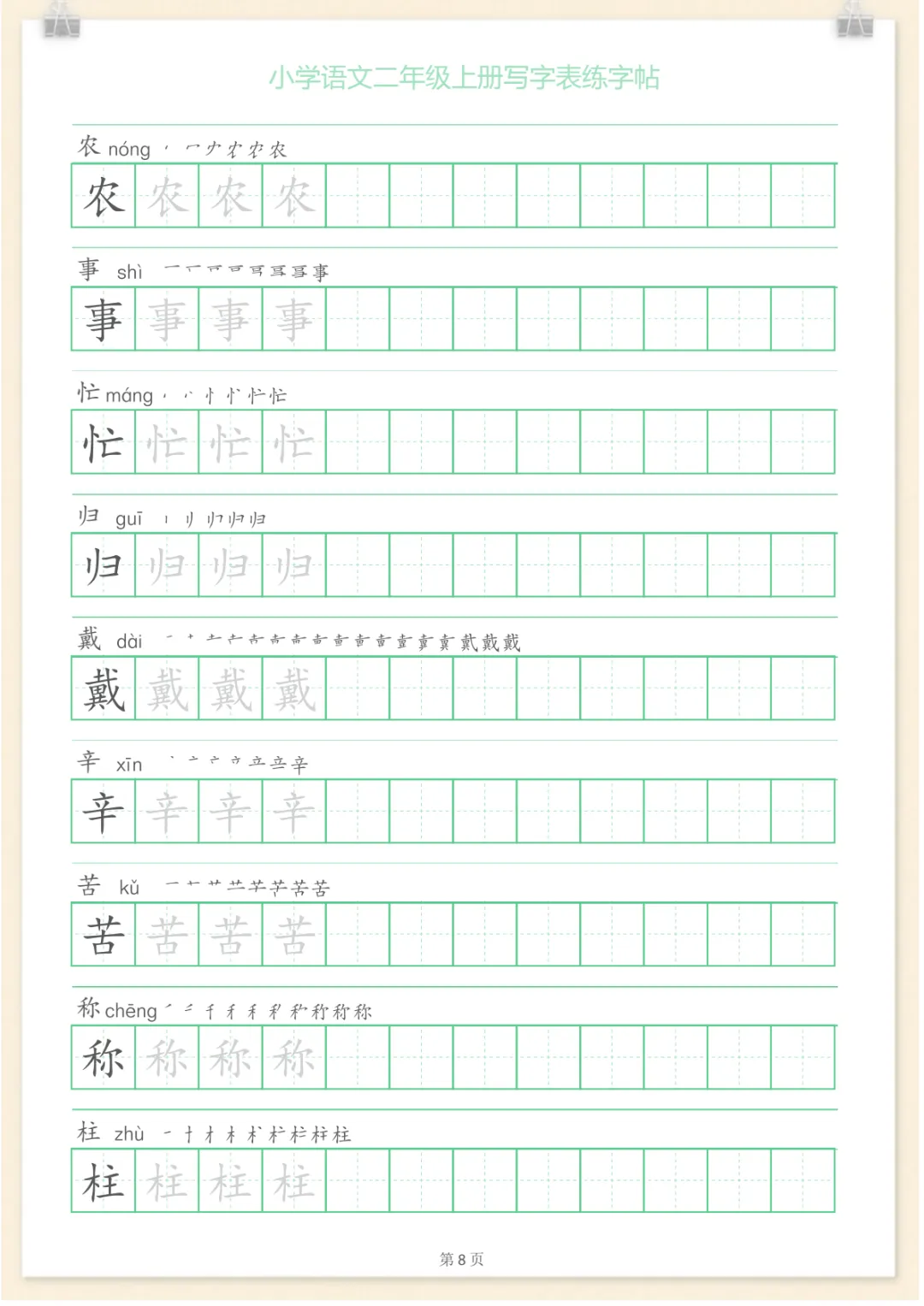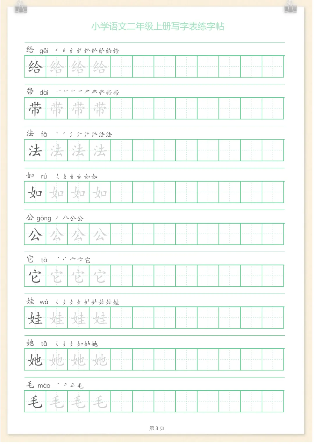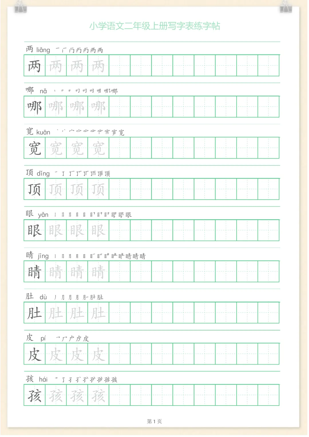 二年级语文上册一字三描红写字表字帖,共28页,电子版可下载可打印,内容紧扣二年级上册语文写字训练要求,帮助孩子在描红与临写过程中规范笔画笔顺、巩固生字书写、提升字形结构把握能力,循序渐进夯实基础书写习惯。这份资料适合家长在家配合课本同步练习,也方便日常复习与查漏补缺,需要的家长可以抓紧下载打印出来,让孩子练一练。