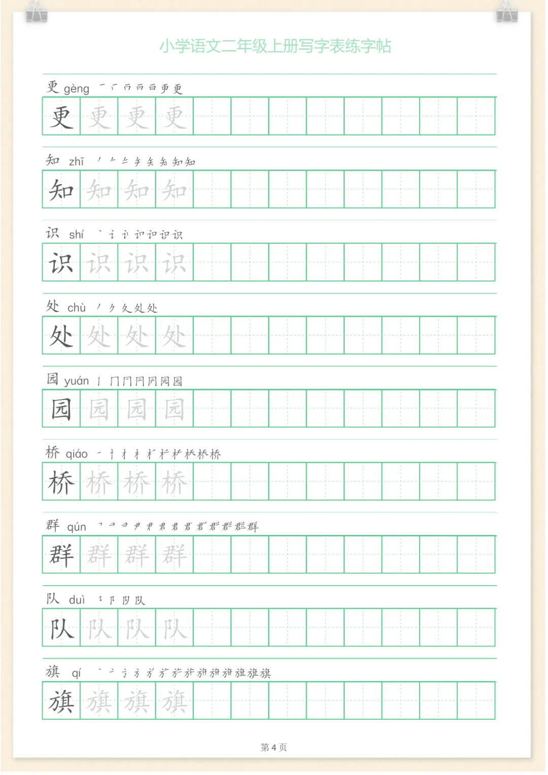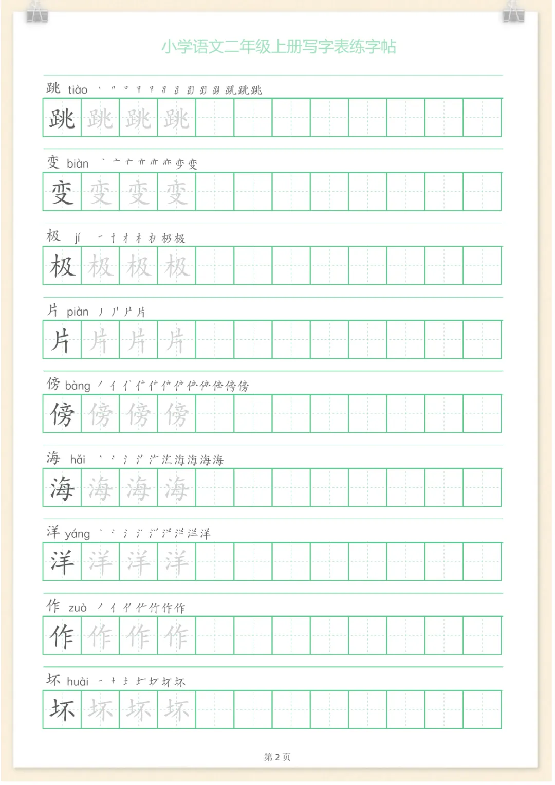 二年级语文上册一字三描红写字表字帖,电子版可打印