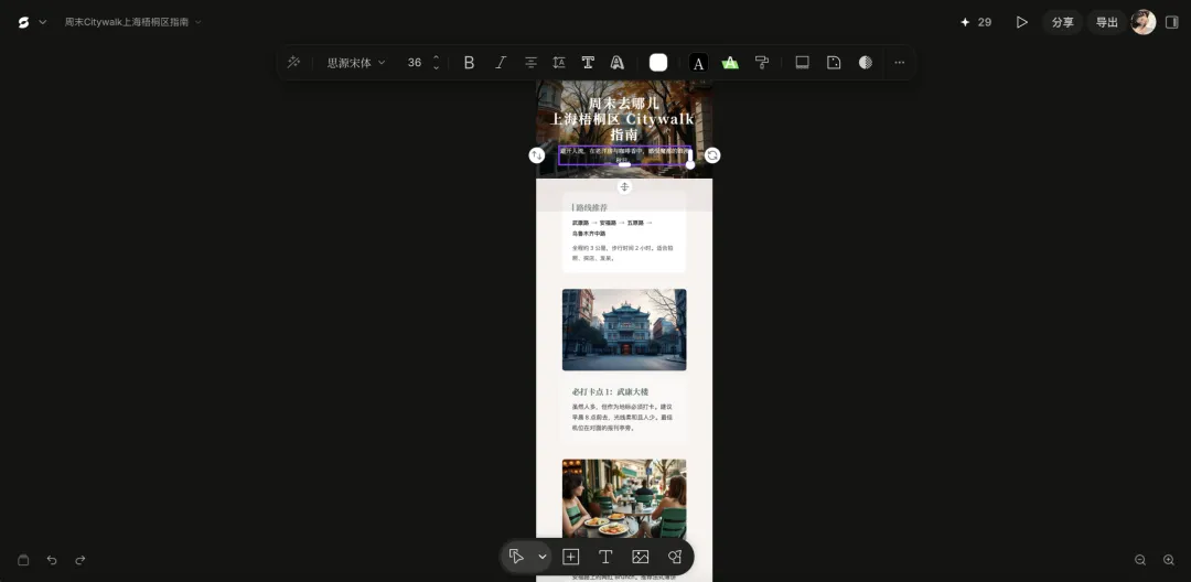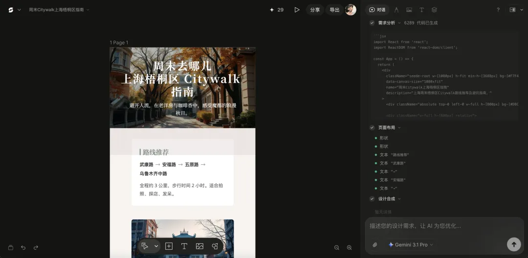 我拿「上海梧桐区 Citywalk 指南」做了个测试,整个流程丝滑到离谱: