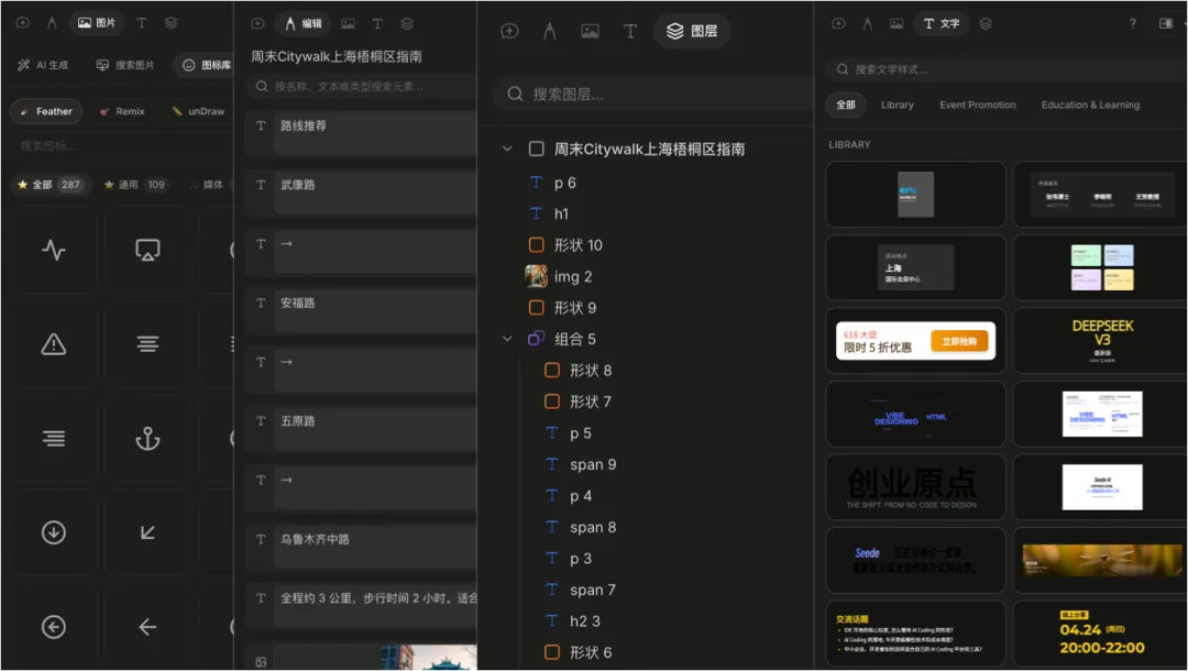 搞定基础排版只是第一步,Seede AI 真正的「杀手锏」,藏在素材库和多格式导出里: