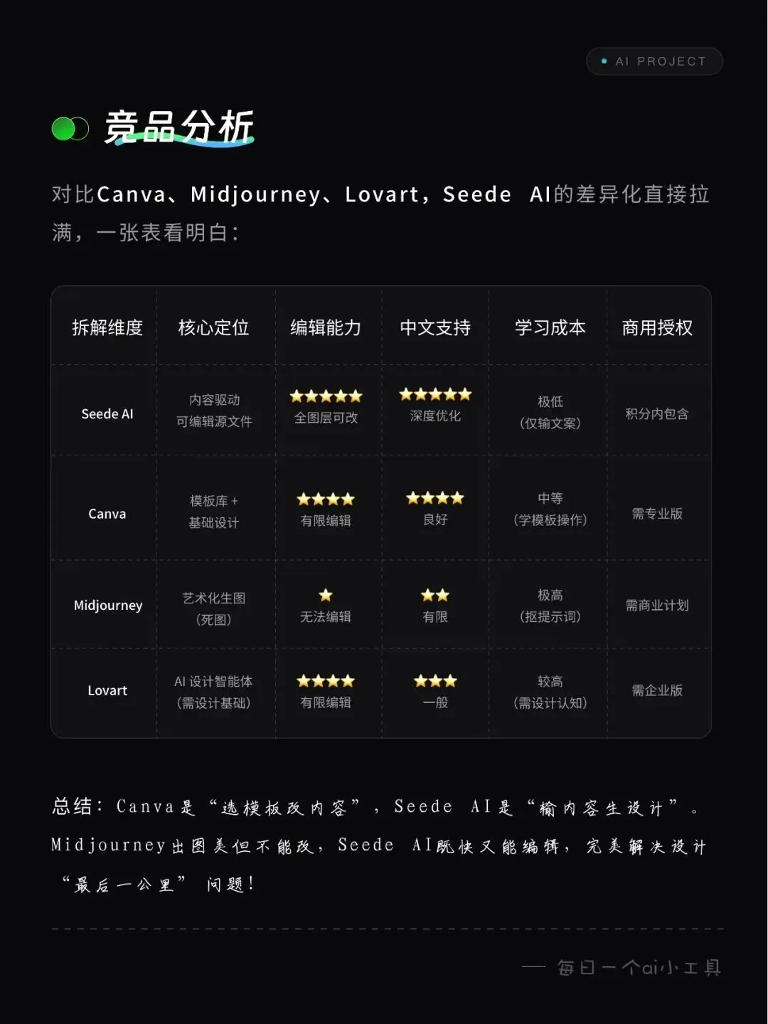 我对比了 Canva、Midjourney、Lovart,Seede AI 的优势真的戳中了非设计人群的痛点: