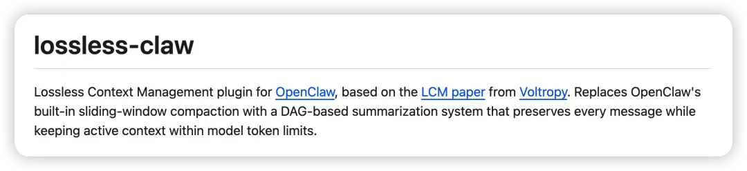 项目地址: https://github.com/Martian-Engineering/lossless-claw