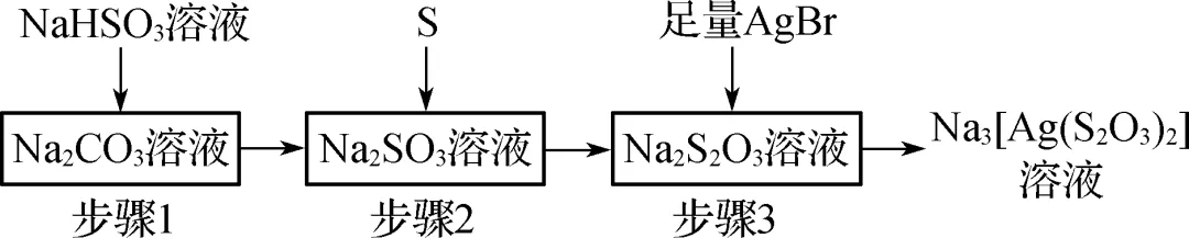 【解析】Ka2(H2SO3)·Ka2(H2CO3)=2-2-3--3=3×10-18,pH=8,c(H+)=10-8,故c(SO2-3)·c(CO2-3)=3×10-1810-16·c(HSO-3)·c(HCO-3)=0.03c(HSO-3)·c(HCO-3),A正确;步骤1中,Na2CO3溶液与NaHSO3溶液反应生成亚硫酸钠和碳酸氢钠,根据元素守恒,钠离子的浓度应大于2倍的含硫微粒浓度之和,B错误;步骤3所得是清液中,c\rc\)(\a\vs4\al\co1(Ag+)·c\rc\)(\a\vs4\al\co1(Br-)≤Ksp(AgBr),C错误;步骤3的离子方程式为AgBr+2S2O2-3===\a\vs4\al\co1(Ag\b\lc\(\rc\)(\a\vs4\al\co1(S2O3))2)3-+Br-,D错误。