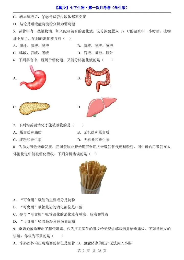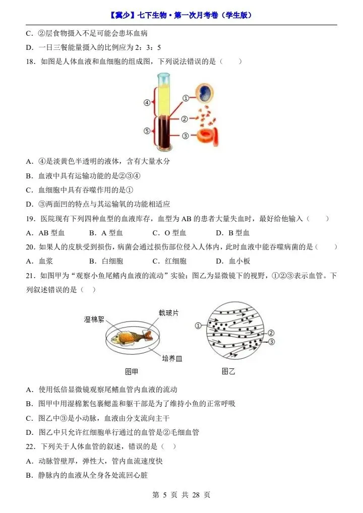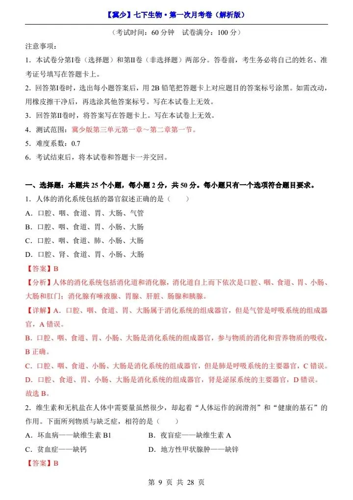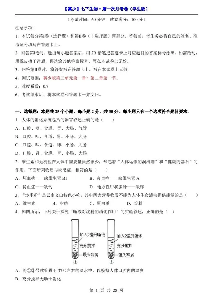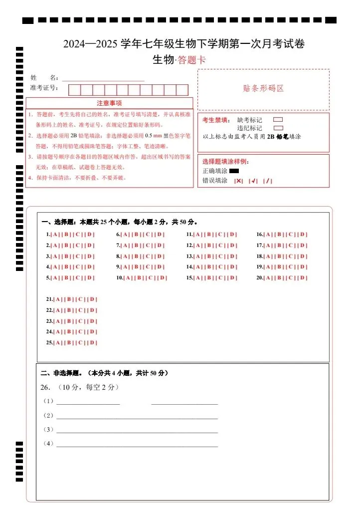 寒假蓄力,进阶不停歇。今日分享26春七下生物冀少版第一次月考试卷(附答题卡)完整电子版可打印!高清可打印,每日轻量练习,拒绝无效刷题,用系统化资料筑牢学科基础,让假期成为提升的黄金期,开学轻松领跑。