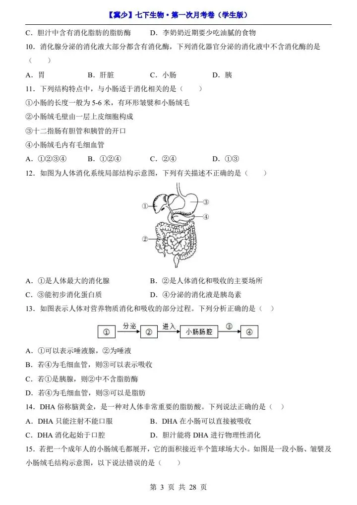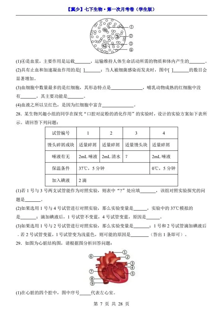 26春七下生物冀少版第一次月考试卷(附答题卡)完整电子版可打印