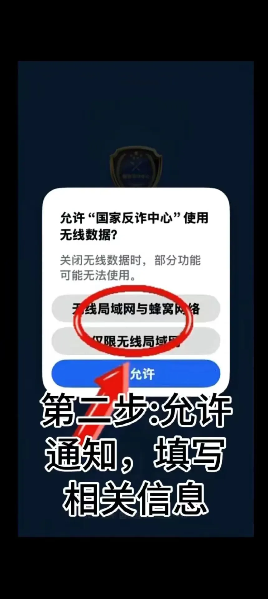 第二步:允许通知,填写相关信息