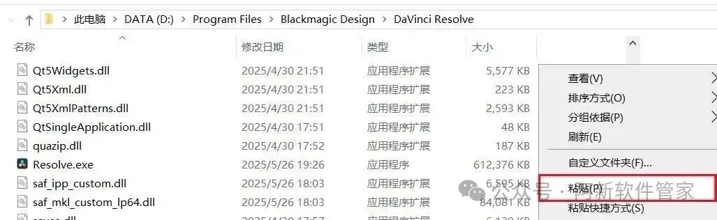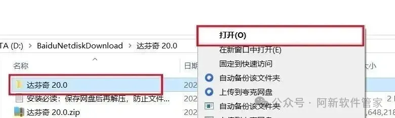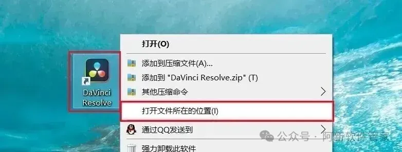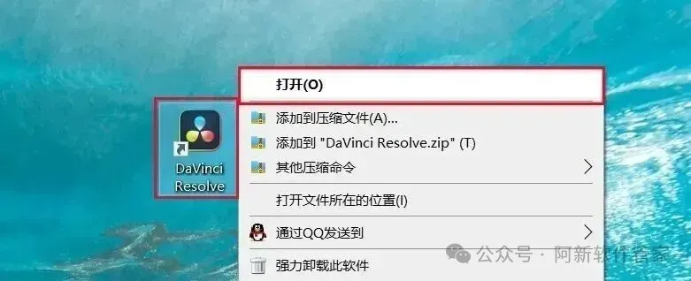 1.打开下载的达芬奇软件安装包,鼠标右击压缩包选择【解压到当前文件夹】。