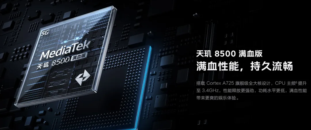 天玑8500满血版相比上一代属于常规升级,稍有不同的是砍掉了独显芯片,加上了旗舰同款的Monster超核引擎。安兔兔跑分最高超过260万分。按照官方说法,可以在主流游戏中实现165Hz满帧。