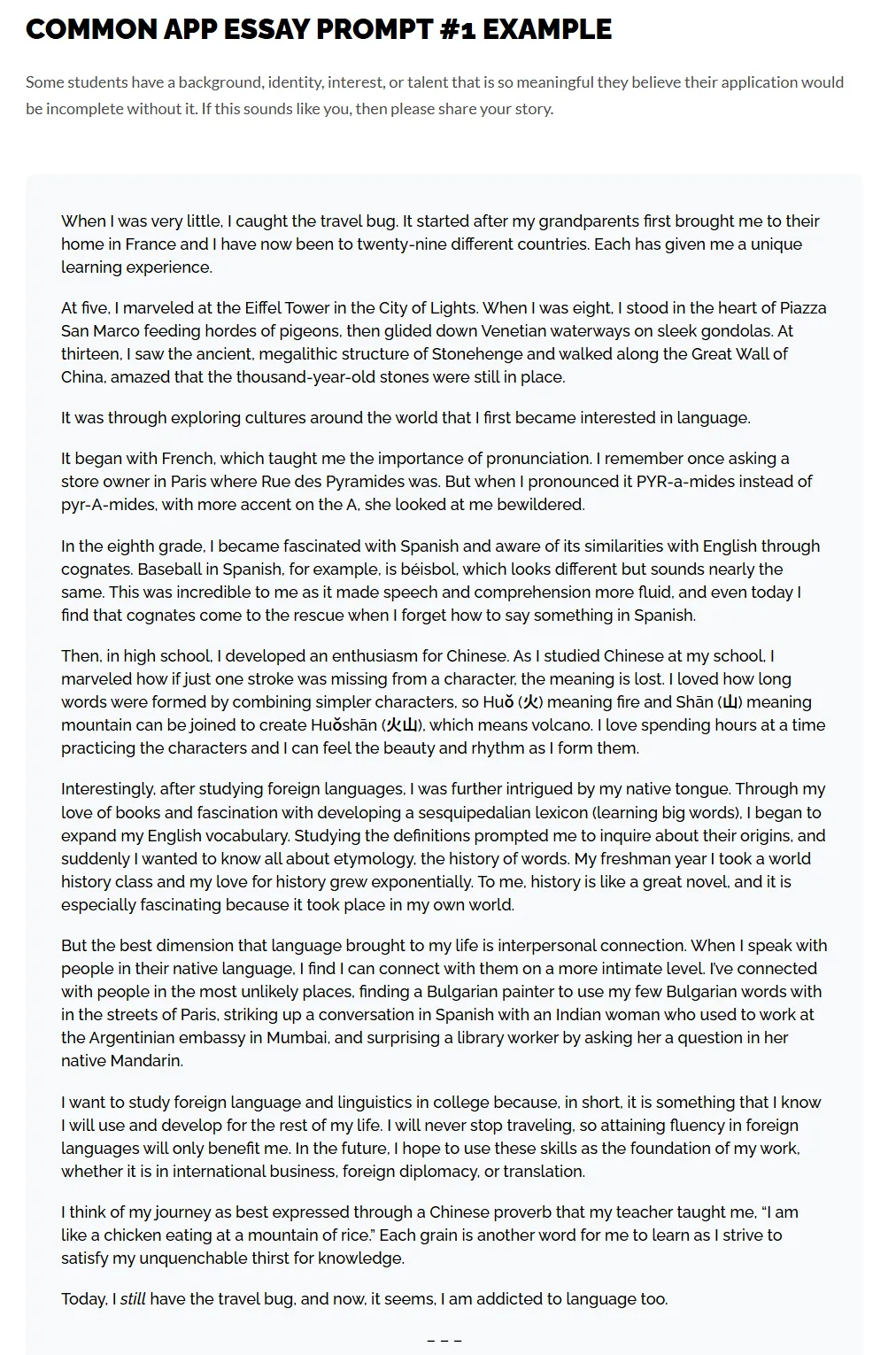 适合人群:有过被他人善意帮助、深受触动经历的学生,适合擅长情感表达、注重细节的申请者。