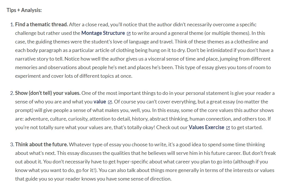 最重要的是,这些特质如何证明你已经做好了进入大学的准备(能够快速适应大学生活、实现自我成长),并且你能为他们的课堂和社区带来什么样的机会。
