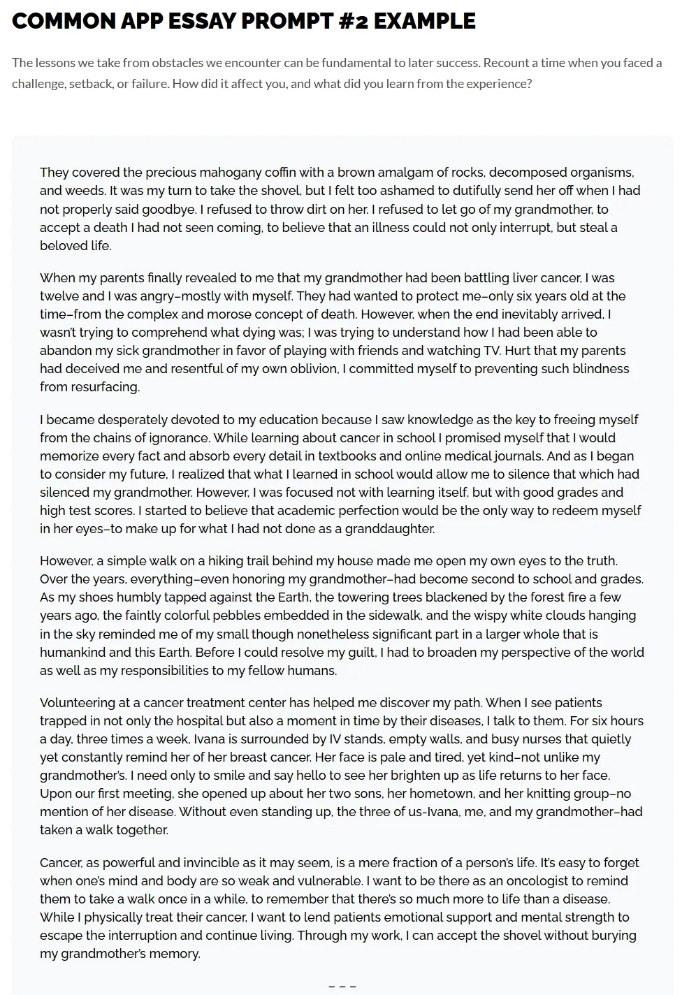 📌题目二:The lessons we take from obstacles we encounter can be fundamental to later success. Recount a time when you faced a challenge, setback, or failure. How did it affect you, and what did you learn from the experience?