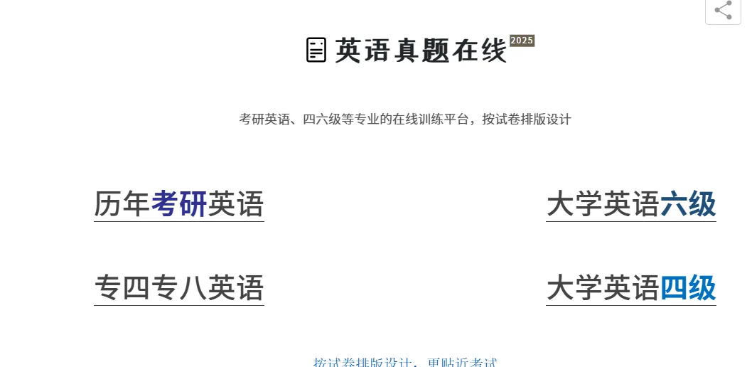 英语备考是一个涵盖全网最全英语真题库的在线学习平台;支持网页端和移动端。