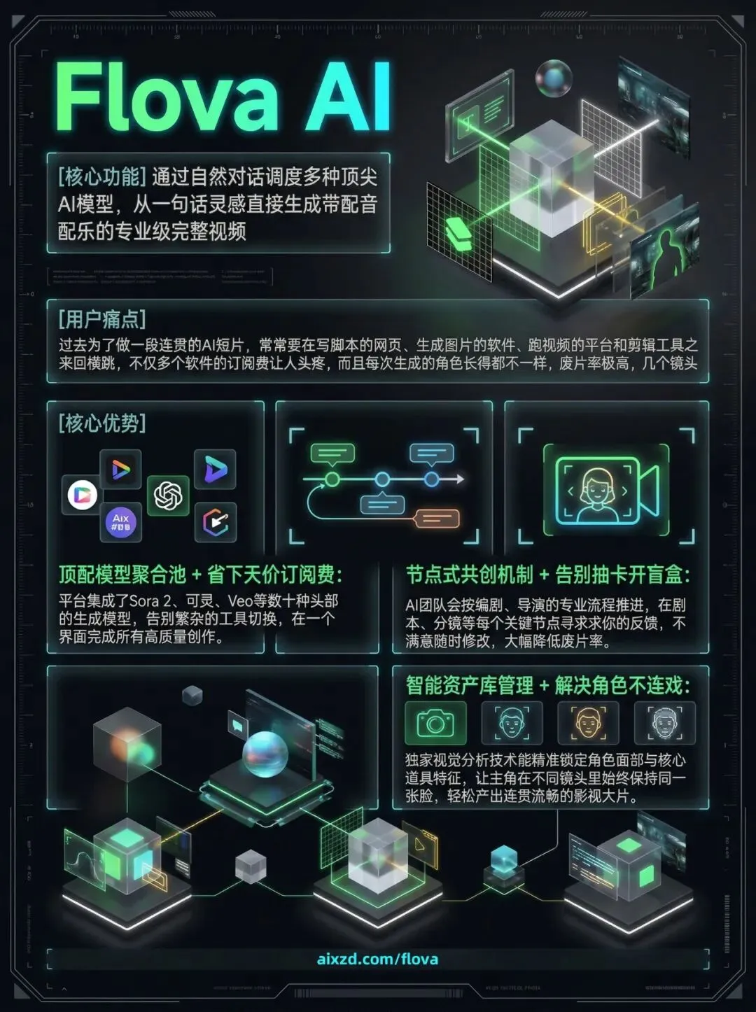 Flova AI把一整个专业的影视制作团队直接搬到了你的浏览器里。面对高门槛的视频创作,它搭建了一个非常友好的对话式工作流。