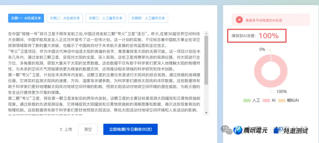 很多人不知道,现在AI写作的文章99%都能被检测出来,小梁jianzhi不停反反复复测试了几百次,用常规的提示词prompt写出来的文章被检测出来的几率接近100%!这就是为什么很多人用AI写文章,曝光量非常低的原因!平台早都能检测出来了!