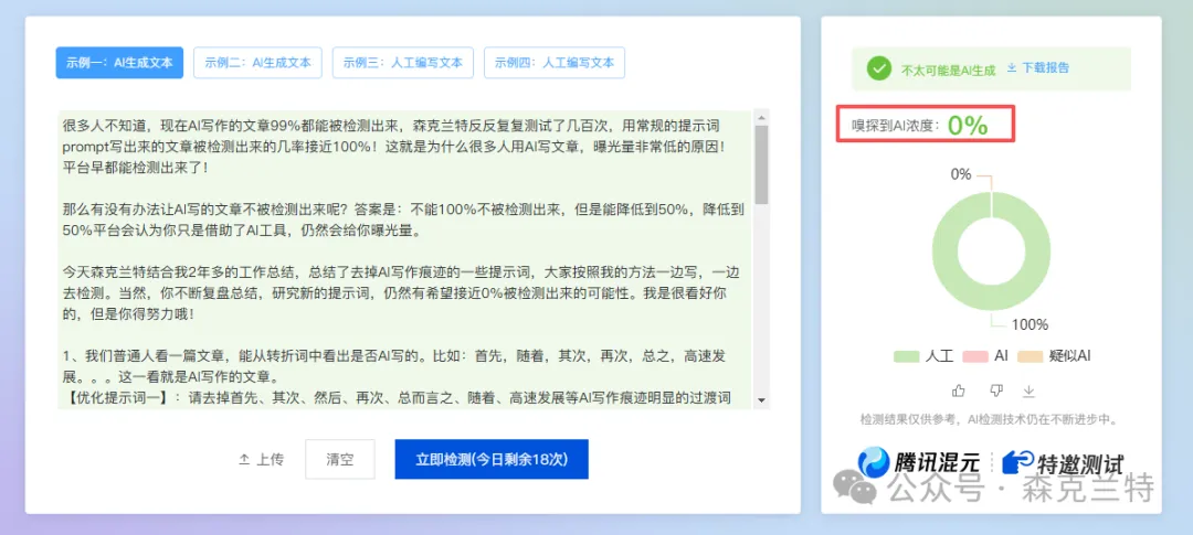 那么有没有办法让AI写的文章不被检测出来呢?答案是:不能100%不被检测出来,但是能降低到50%,降低到50%平台会认为你只是借助了AI工具,仍然会给你曝光量。